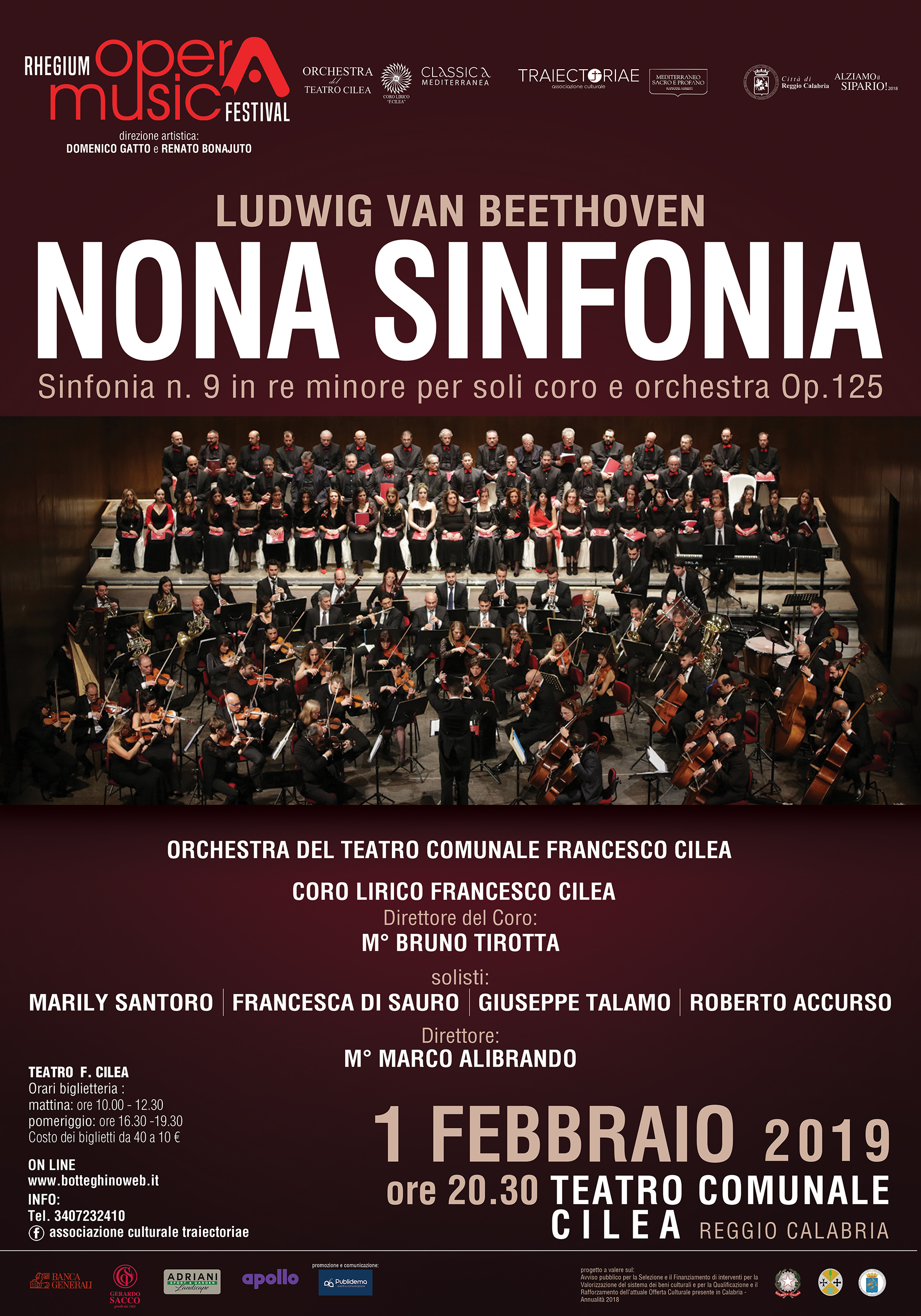 Venerdì 1 febbraio 2019, alle ore 20.30, all’interno del programma della stagione 2918-2019 “Rhegium Opera Musica Festival”, sezione “Classica Mediterranea” promossa dall’Orchestra del Teatro Cilea e dal Coro Lirica Cilea, sarà eseguita, presso il Teatro Cilea di Reggio Calabria, la Nona Sinfonia in re minore per soli, coro e orchestra Op. 125 di Ludwig Van Beethoven.