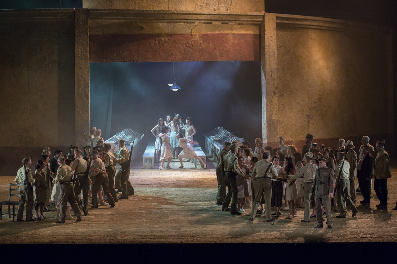 «La strada che abbiamo scelto – spiega Medcalf – per tornare al ruvido realismo dell’originale è di trasportare l’azione dell’opera in avanti, ai tempi della Spagna Nazionalista della metà degli anni Quaranta, epoca che presenta paralleli notevoli col mondo sotterraneo e senza legge del racconto di Mérimée». (da “L’Opera” febbraio 2018)