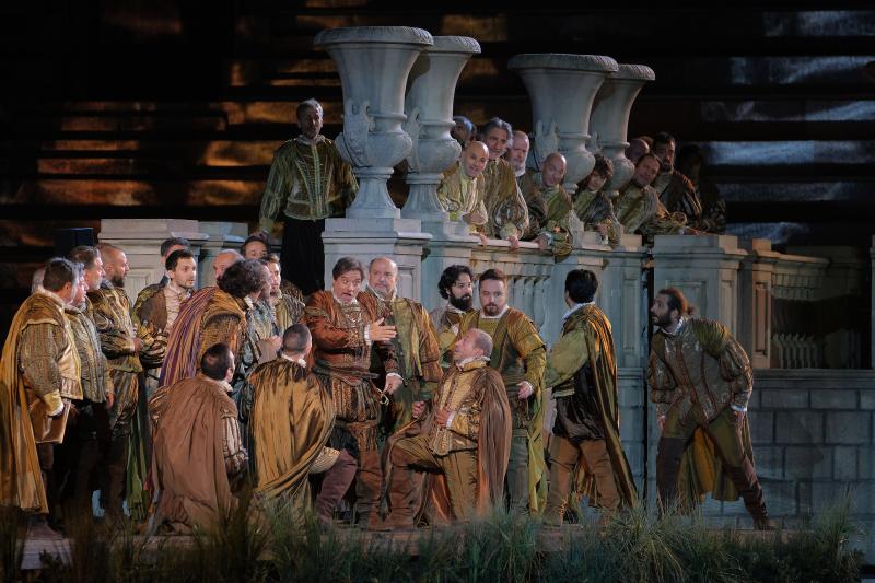 In questa serata, forse più che in altre, è stato il canto a dominare la scena: la regia ha scelto di ridurre al minimo gestualità e coreografie, lasciando che le voci, libere da costrizioni, potessero rivelare appieno la propria personalità e parlare direttamente al pubblico. Un omaggio alla tradizione che ha trovato un partner ideale nella direzione di Michele Spotti, sempre precisa e sorvegliata: tempi ben dosati, orchestra e palcoscenico in perfetto dialogo e una narrazione scorrevole, senza mai scivolare nella retorica. Insomma, una bacchetta che non fa fuochi d’artificio, ma che tiene la barra dritta nel segno della grande prassi verdiana.