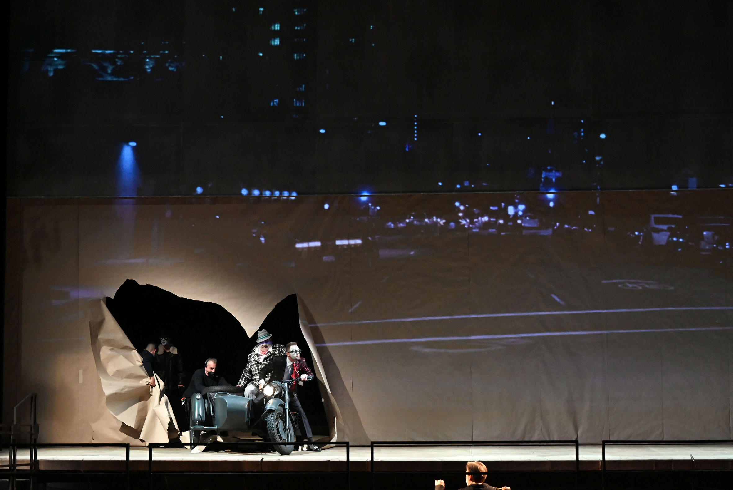 Qualche sottolineatura che vorrebbe essere grottescamente audace, e risulta solo un po’ pacchiana, non basta a invertire la tendenza di un allestimento persino troppo spoglio e sobrio, elegante ma anche freddo e quasi indifferente, di un’indifferenza che non ha nulla del disincanto brechtiano e anzi sembra perdersi (involontariamente) nell’esibizione di trovate patinate quanto risapute. Musicalmente, la sapiente bacchetta del direttore d’orchestra Christopher Franklin, ci conduce con sicurezza attraverso questo mondo variegato e complesso, di apparente facile fruibilità, popolaresco ma denso di riferimenti colti e di nuove intuizioni; la concertazione non perde mai la sua chiarezza anche nei concertati più complessi (mozzafiato quello che chiude l’atto primo) e l’ Orchestra dell’Emilia-Romagna “Arturo Toscanini” da prova di padronanza e duttilità interpretativa anche quando suona nei frequenti momenti in piccolo organico da cabaret. L’imponente Leokadja di Alisa Kolosova dona finalmente la giusta voce e presenza ad un ruolo solitamente affidato a soprani in disarmo, quando invece il ruolo è scritto per una potentissima voce mezzosopranile.