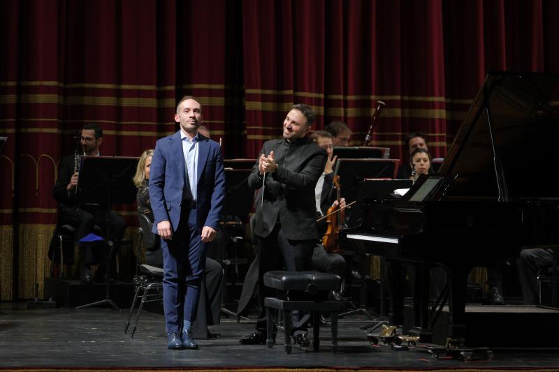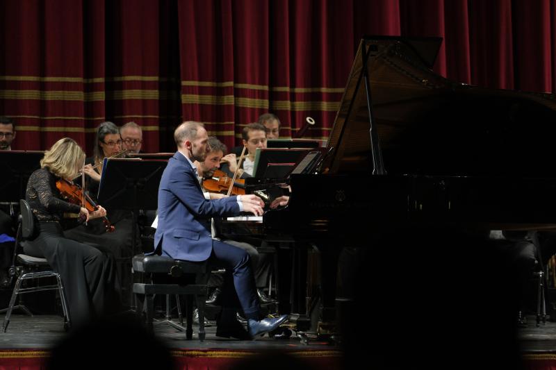Qui il pianoforte di Sciortino evita ogni vezzo impressionista: attacco netto, articolazione tersa, prospettive sonore calibratissime. Fagone dirige con rigore luminoso, modellando una tavolozza precisa: legni dal timbro perfettamente profilato, ottoni ben focalizzati e mai invadenti, archi che sostengono con compattezza e linearità il discorso musicale. Il Presto tragico avanza con energia controllata, mentre nel penultimo episodio emerge uno scambio violini–pianoforte di notevole perizia: fraseggio terso, attacchi millimetrici, senso dell’incastro timbrico da autentica musica da camera. Il centro della serata è la prima esecuzione assoluta di Sentieri della memoria, Concerto per pianoforte e piccola orchestra di Orazio Sciortino, commissionato per l’anniversario del Filarmonico. Il titolo suggerisce un percorso interno, un archivio mentale in cui forme e figure ritornano trasformandosi. Il primo movimento prende avvio da un mi bemolle ribattuto dal quale si diramano superfici armoniche e linee che scorrono come una galleria di oggetti in movimento. La cadenza, ampia e sorvegliata, è quasi un recitativo introspettivo che traghetta al cuore dell’opera. La scrittura, in particolare per il pianoforte, è di difficoltà altissima: velocità estreme, sovrapposizioni virtuosistiche, incastri ritmici serrati e passaggi in cui l’interprete deve intervenire direttamente sulle corde, ampliando la tavolozza timbrica dello strumento. Sciortino affronta tutto con una lucidità tecnica impressionante, senza mai perdere la naturalezza del flusso musicale. Nel secondo movimento, Di quartieri e uomini solitari, riemerge Baggio in forma sonora: la cellula “si–la–sol–sol”, le campane distanti, il vibrafono che disegna risonanze, i pizzicati come passi nella notte. Il finale è un moto perpetuo brillante, quasi un gioco di riflessi che l’orchestra segue con prontezza, mentre Fagone mantiene la struttura in perfetto equilibrio. Al termine del concerto di Sciortino, il pianista si è congedato dal pubblico con un bis di rara finezza: Les chemins de l’amour di Poulenc, in una trascrizione pianistica realizzata dallo stesso Sciortino, eseguita con tocco morbido, senso della linea e un controllo dinamico che ha restituito tutta la malinconica grazia del brano. La chiusura è affidata a Richard Strauss, con la Sonatina n. 1 per fiati, scritta negli ultimi anni del compositore. Opera apparentemente minore, in realtà laboratorio prezioso di trasparenze, contrappunti e humour. Fagone e i fiati dell’orchestra la affrontano con chiarezza architettonica: legni che respirano come un ensemble cameristico, ottoni calibrati con eleganza, sezioni che si incastrano con una naturalezza laboriosa, quasi artigianale. Ne emerge un piccolo gioiello, luminoso pur nella sua introspezione. Il pubblico ha accolto la serata con entusiasmo, tributando a tutti gli interpreti lunghi e calorosi applausi.