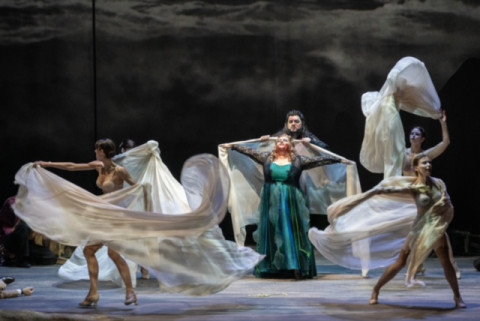 Le scenografie dello stesso Brockhaus e di Giancarlo Colis, pur offrendo alcuni spunti interessanti, sono apparse stilizzate e talvolta eccessivamente semplificate. Il comparto luci ha mostrato diverse lacune, mentre le coreografie di Valentina Escobar, non prive di buone idee, sono risultate ripetitive e imprecise, appesantendo l’equilibrio visivo e drammatico. La scarsa visibilità dalla mia posizione in barcaccia, non mi consente di esprimere un giudizio in merito alle proiezioni di Luca Scarzella. Sul fronte musicale, però, la serata ha trovato una parziale compensazione.