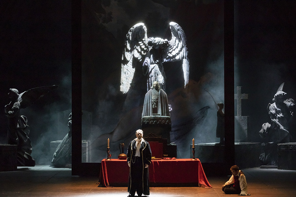 E’ la volta di Don Giovanni al Teatro Regio di Torino per proseguire la triade dapontiana, con l’allestimento che nel 2013 riprese lo spettacolo già datato 2005 partorito dalla mente di Michele Placido. Ripresa da Vittorio Borrelli, è una regia sempre più cupa quella che narra le vicende del dissoluto punito, partendo da una certa neutralità data anche dagli ambienti creati da Maurizio Balò, inizialmente solo accennati dietro un sipario fittizio, che man mano si arricchiscono di particolari foschi, dalle architetture ai dettagli ed alle luci di Andrea Anfossi, sempre più tendenti al rosso delle fiamme infernali.