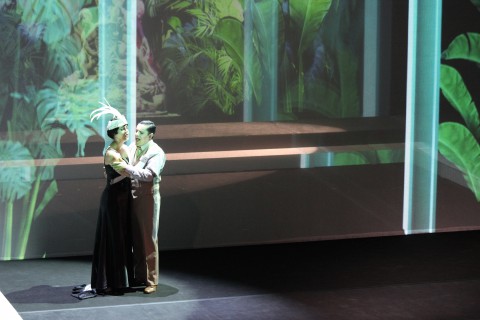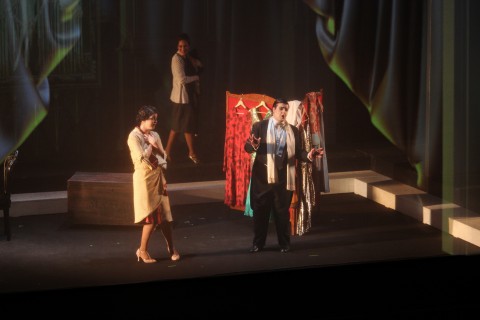 Emiliani vede in Norina una donna sì innamorata del giovane nipote di Don Pasquale, ma anche una femme fatale attrice di teatro che dunque senza esitare entra nei panni della santarellina pronta a beffare il vecchio tirchio, lasciando intuire o immaginare anche una strana tresca col furbo Malatesta che evidentemente subisce il suo fascino. Dunque spettacolo brillante ma anche dai tratti amari che evidenziano quanto il vecchio protagonista forse subisca più che altrove le trame degli ingrati suoi prossimi. Ecco che anche l’ambientazione Art Decò sottolinea certo spirito e sensazioni miste di giovialità e delicatezza e lo spettacolo fila via fluido, intelligente e garbato.
