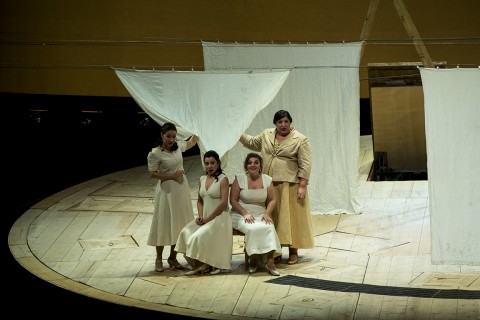 La Alice di Cinzia Forte gli tiene testa con intelligenza e incisività. Molto corposa nei centri e scioltissima in scena, adopera i suoi punti di forza per ammaliare, simulare, ‘brigare’ insieme alle amiche comari.