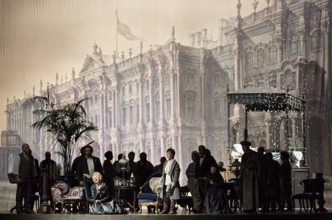 Lo spettacolo sontuoso e tradizionale di Lamberto Puggelli, ripreso in quest’occasione da Salvo Piro, mostra, nello spazio del San Carlo, la suggestione e l’opulenza della classe nobiliare russa in esilio volontario o forzato, una Parigi poco francese e molto “dorata”, un dramma che incalza tra festini e lustrini con quella tipica eleganza ed ostentazione russe di una certa classe nobiliare. Ci avremmo visto benissimo l’ambientazione di una Anna Karenina in quel dorato sobrio e nei colori sempre vivi e pertinenti delle bellissime scene e dei fascinosi costumi di Luisa Spinatelli.
