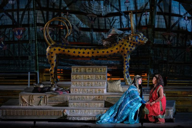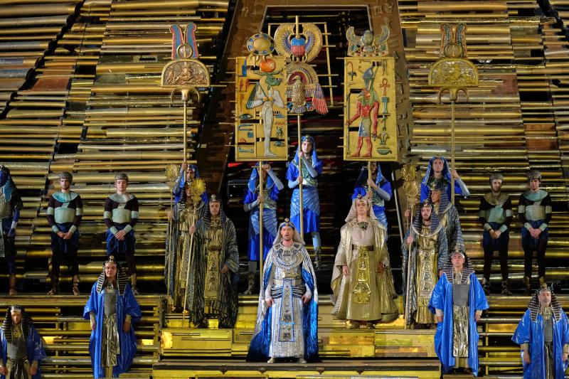 Al suo fianco l'Aida di Maria Josè Siri si conferma ancora una volta cantante di altissimo livello, per nulla nascosta dal nome e dalla voce di un partner tanto eccellente. La Siri riesce a modellare la recita sulle corde più intimiste rispetto ai canoni abituali, specchio dell'interpretazione del tenore tedesco, meraviglioso riflesso del suo innamorato condottiero: filati, mezze voci e pianissimi non si contano. Eppure quando la violenza musicale lo esige, la voce della Siri svetta nei concertati senza indugio, dimostrando una capacità di fiato non comune. Sebastian Catana, dalla voce chiara e squillante, è Amonasro fiero ed altero come richiesto. Romano Dal Zovo si conferma Re sicurissimo, veterano e beniamino del pubblico areniano. Qualche difficoltà per Abramo Rosalen, Ramfis un po' spaesato sia vocalmente che scenicamente, ma che supera la scena del giudizio al quarto atto senza intoppi. Riccardo Rados è un Messaggero di solida garanzia, come pure la Sacerdotessa di Yao Bohui.