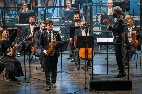 Già Konzertmeister dell’Opera e Filarmonica di Vienna, nonché recentemente vincitore del Secondo Premio e del Premio del pubblico al prestigioso Concorso Internazionale di Violino “Premio Paganini” 2018 a Genova, il violinista franco- russo Fedor Rudin si sta rapidamente affermando come uno dei più singolari concertisti della generazione di oggi. Rudin e il direttore d’orchestra Pietro Rizzo (anch'egli violinista) scelgono di eseguire a Verona il concerto con l’originale “scordatura” : la scrittura infatti è in mi bemolle maggiore ma Paganini prevede che il violino sia accordato un semitono sopra la norma, per ottenere un suono più brillante e penetrante. Rudin, in perfetta sintonia con il gesto mai carico ma presente di Rizzo, domina la scena con un virtuosismo iperbolico che stupisce per la sicurezza, la continuità e la scioltezza. Non solo possiede un’ottima tecnica, mostra una padronanza pirotecnica dello strumento, per intonazione, brillantezza, agilità, controllo delle arcate e di tutte le funamboliche esigenze che questo concerto richiede. E, dunque, se il virtuosismo diventa elemento strutturale, dispiega la sua dialettica anche attraverso un’articolazione del suono che Rudin coglie come eminentemente belcantista: un sottilissimo gioco di emissioni differenti e contrasti armonici che se da un lato tralasciano una visione meno muscolosa del Paganini “demonio”, dall’altra esaltano la furbizia della “scordatura” esaltando un suono più brillante e penetrante. Pietro Rizzo accompagna con attenzione, lascia spazio al solista e controlla l’estroversa scrittura orchestrale in cui Paganini si bea della ricchezza dell’organico soprattutto nella sezione degli ottoni.