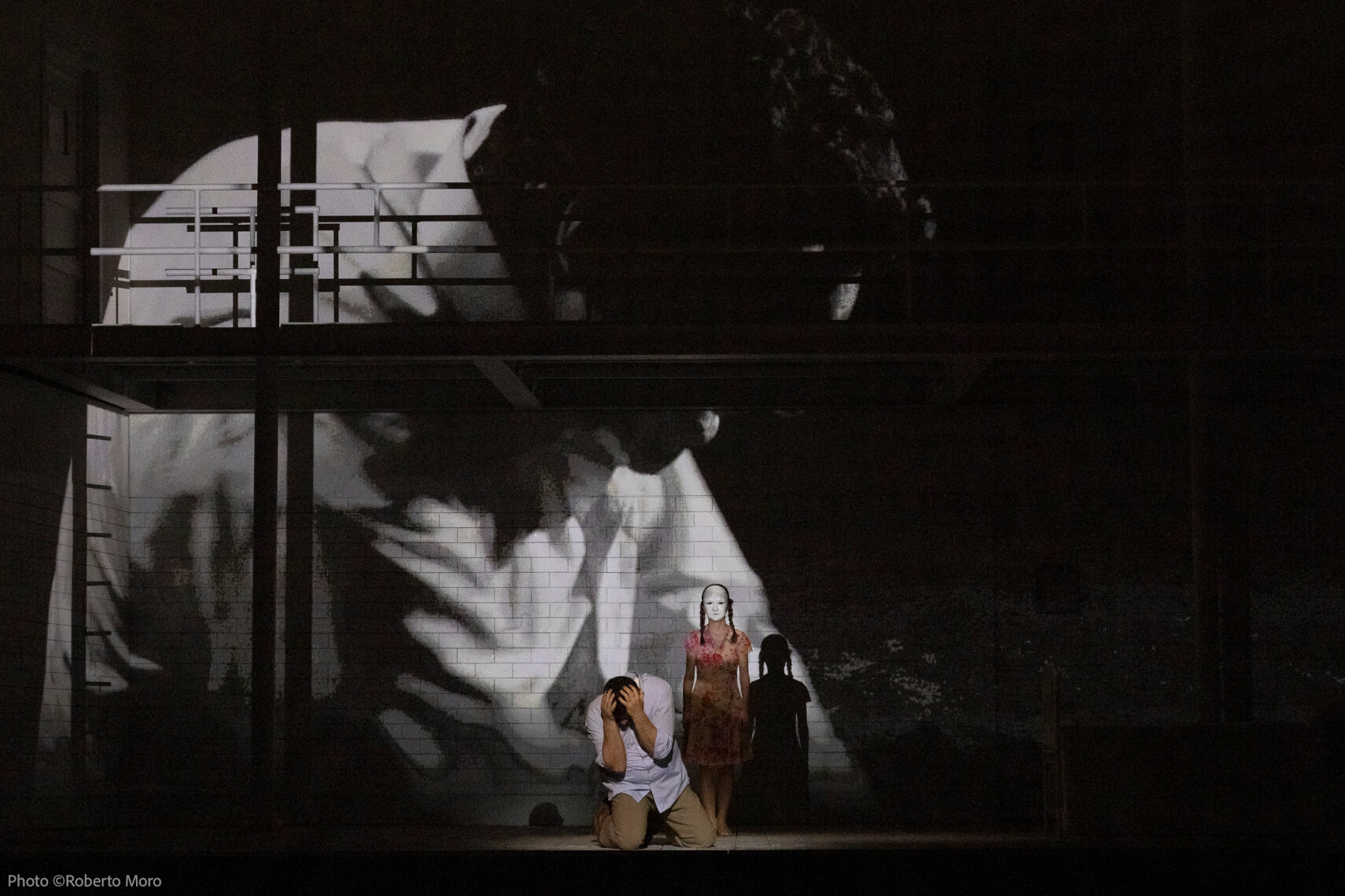 L'allestimento non si limita al simbolismo, ma propone una rilettura iconografica significativa: la gobba, simbolo distintivo di Rigoletto, è trasferita a Monterone, che nel suo ingresso in scena sembra incarnare metaforicamente il protagonista. Questa scelta sottolinea l’affinità tra i due personaggi, entrambi padri pronti a difendere l'onore delle proprie figlie, e trasforma la derisione di Rigoletto nei confronti di Monterone in una tragica auto-profezia.