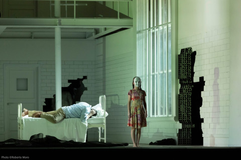 La riproposizione del Rigoletto di Giuseppe Verdi firmata da Damiano Michieletto, già presentata alla Fenice nel 2021, si conferma come un'elaborazione ambiziosa e profondamente psicologica, incentrata sulla dissociazione mentale del protagonista. Rigoletto, logorato da un insostenibile senso di colpa per la tragica morte della figlia Gilda, unica ragione di vita dopo la scomparsa prematura della moglie, si rifugia in una realtà fittizia, rivivendo ossessivamente gli eventi drammatici che hanno devastato la sua esistenza.