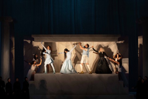 La regista Emma Dante al solito svuota la scena degli orpelli per riempirla di idee, e farne il regno di una prepotenza espressiva, carica di lacerante umanità. Questo principato è il teatro carnale, meridiano e ancestrale scelto dalla regista siciliana chiamata a produrre uno spettacolo corale dove va in scena una tragedia classica centrata su una famiglia. La dimensione corale è splendidamente enfatizzata dalle coreografie di Sandro Campagna, molto presenti, quasi un omaggio alla tradizione francese della “tragédie-ballet”, cui l’ispirazione di questo Gluck francese non è del tutto estranea. Coreografate efficacemente sono le movimentate scene di massa – come la folgorante scena iniziale con Ifigenia e le sacerdotesse “prefiche” o quella, riuscitissima, degli incubi dell’omicida Oreste tormentato dalle furie – più incisive rispetto ai passaggi più raccolti, che fanno leva piuttosto sul carisma dei tre protagonisti. Lo struggimento insinuante della lettura del direttore d’orchestra Diego Fasolis, cui ha contribuito la maiuscola disciplina strumentale e l' ipersensibilità emotiva dell' orchestra de I Pomeriggi Musicali unita a una prestazione toccante del coro di OperaLombardia preparato da Massimo Fiocchi Malaspina, ha trovato una tinta musicale vaporosa eppure dolorosamente drammatica. I "profumi di suono" diffusi in tutta la lunga partitura davano vertigine, rendendo aspre come non mai anche le minime increspature patetiche e solenni, anche le azioni e le disperazioni un po' manierate di questi personaggi leggendari.