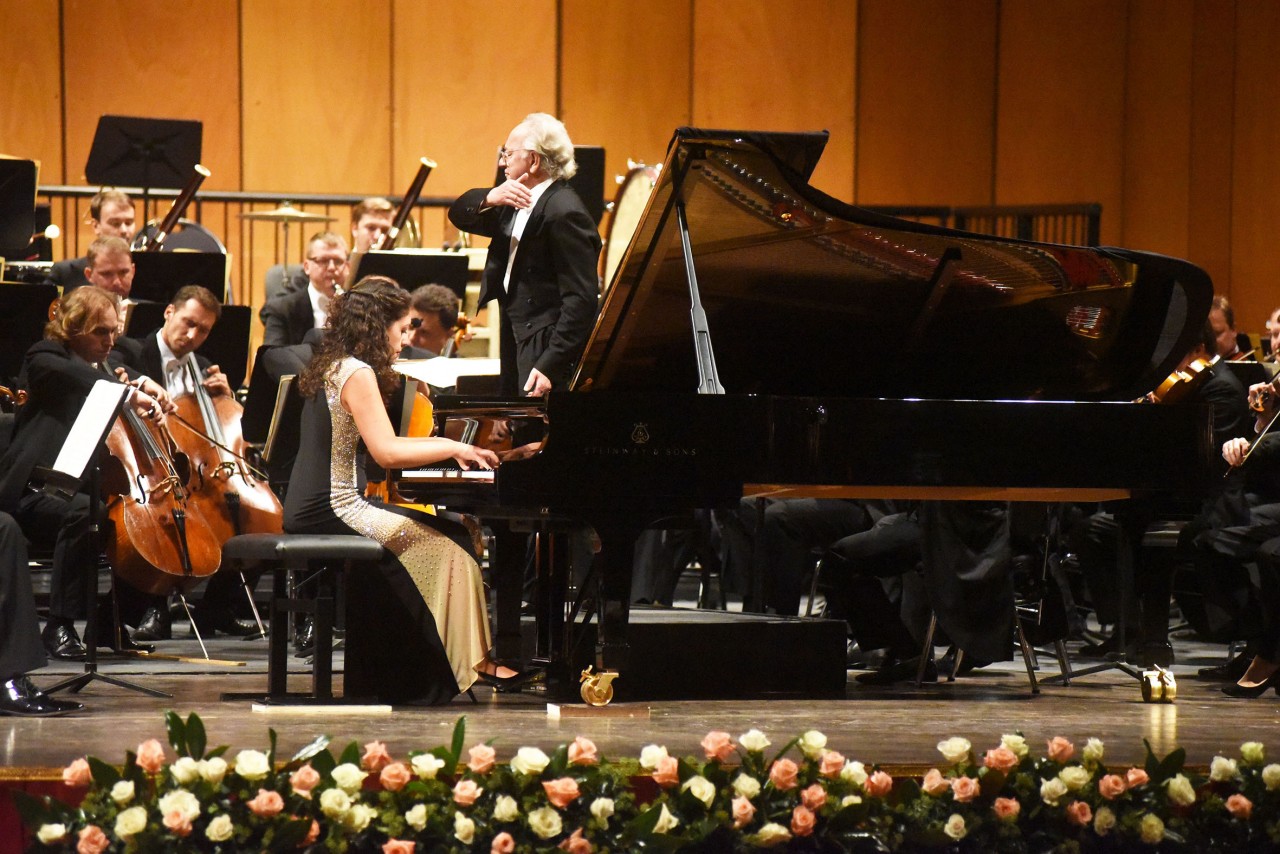 Protagonista del Concerto per pianoforte di Cajkovskij il giovane talento italiano Beatrice Rana, che si sta meritatamente imponendo anche a livello internazionale. L’artista ha regalato al pubblico del Filarmonico una gradita interpretazione senza sbavature e dalla tecnica elegante, talvolta a discapito di qualche licenza dinamica ed espressiva, forse attesa e funzionale a valorizzare la partitura. Nel suo insieme comunque l’impronta stilistica ha marcato un encomiabile distacco dal romanticismo melenso e patinato di certa prassi esecutiva, d’altronde incompatibile con l’ontogenesi della compagine di San Pietroburgo. Sebbene non impeccabile in qualche passaggio l’affiatamento solista-orchestra, palpabile invece l’empatia di Beatrice Rana con i colleghi russi, attraverso gli sguardi d’intesa e lo scambio di mano con Direttore e Primo Violino prima dell’inchino al pubblico alla fine dell’esecuzione. Aspetti non secondari nella genesi dell’esperienza musicale. Inevitabile un ulteriore assaggio che Beatrice Rana, a furor di applausi, ha concesso nel silenzio dell’Orchestra, confermando nel bis listziano grande equilibrio espressivo.