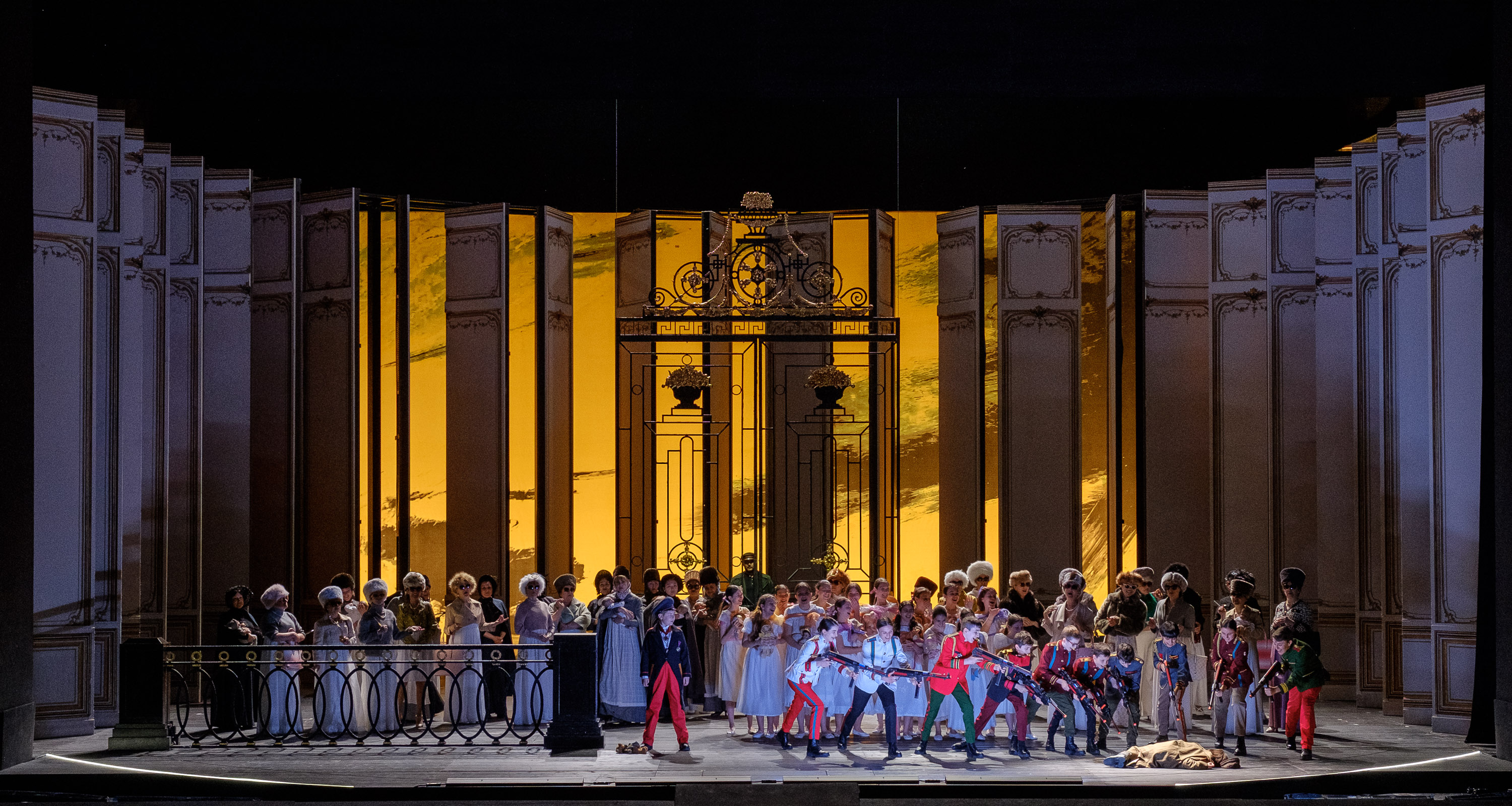 Molto bene il fronte canoro: German è Mikhail Pirogov: il ruolo non è particolarmente raffinato, ma la fissazione per le famose ‘tre carte’ e la passione con cui interagisce con Liza e la Contessa sono palpabili col suo canto ispirato e di vigore. Zarina Abaeva colpisce per la voce che al ruolo di Liza attribuisce carattere e delicatezza allo stesso tempo; la Contessa è una Jennifer Larmore di tempra e forte presenza scenica e vocale; favoloso il conte Tomskij di Elchin Azizov: il suo racconto della storia delle Tre carte è coinvolgente ed intrigante, così come perfetto è il Principe Eleckij di Vladimir Stoyanov; interessante la voce possente di Deniz Uzun che interpreta l’amica di Liza, Polina e che varrebbe la pena risentire in ruoli più esaltanti. Di carattere la Governante Ksenia Chubunova, ed in generale tutti bravi e partecipativi gli altri personaggi: Alexey Dolgov come Čekalinskij, Joseph Dahdah nei ruoli di Čaplickij e Maestro di cerimonie, Maša, Irina Bogdanova, Surin, Vladimir Sazdovski, Narumov, Viktor Shevchenko ed il gagliardo Piccolo comandante Luca Degrandi. Infine segnaliamo nei ruoli del piccolo Herman Silvano Giannini e della piccola Lisa Cecilia Folino.