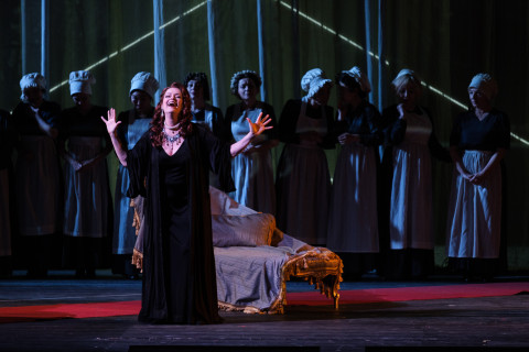 A condurre in ‘pista’ lo spettacolo è il Maestro Valentin Uryupin alla testa dell’Orchestra del Teatro Regio di Torino. Certo ispirato è il modo di interpretare la partitura e di coinvolgere gli interpreti impegnati in scena. L’impatto sonoro è di carattere, ma molto impattante lungo tutta la rappresentazione che diventa spinta e fremente. Il suono sembra restare in buca, per caratteristica del teatro stesso, e pertanto non si colgono particolari sfumature o sottolineature, in favore di volumi abbastanza abbondanti.