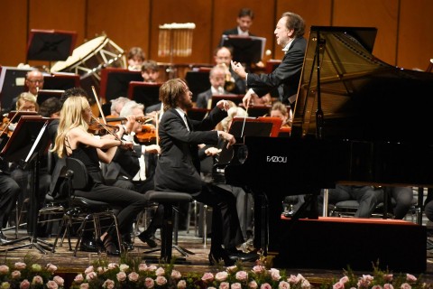 Trifonov è l’altro grande protagonista della serata schumanniana con il Concerto per pianoforte in La minore. Si tratta di una composizione dalle atmosfere fresche e disincantate, esattamente come recitano gli aggettivi Affettuoso, Grazioso e Vivace che caratterizzano i tre movimenti. Scritto poco prima del pezzo precedente, a partire dal 1841, Schumann non era ancora tormentato dalle sue sofferenze psichiche, ed intrise questo concerto di una particolare vitalità e ricchezza espressiva data dal continuo gioco melodico tra il piano solo e l’orchestra che lo abbraccia. Il tema degli archi che si affaccia in più riprese nel primo movimento contribuisce a creare una sensazione di serenità e al contempo commozione, intensificata dagli interventi pianistici e dai fiati che ne sottolineano il carattere romantico. L’Andantino grazioso è un elegante proseguimento ai temi introdotti dal movimento precedente, mentre l’Allegro vivace conclude il pezzo con brio in un vortice di emozioni sempre crescenti. Daniil Trifonov si dimostra all’altezza della sua fama: un eccellente interprete dal tocco preciso e sensibile; non un mero esecutore, ma un musicista intenso che aggiunge alla bellezza insita nella musica stessa una particolare eleganza espressiva alla cui base sta una tecnica di ferro. Giustamente acclamato dal pubblico registra un ennesimo successo personale.