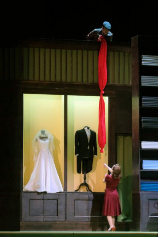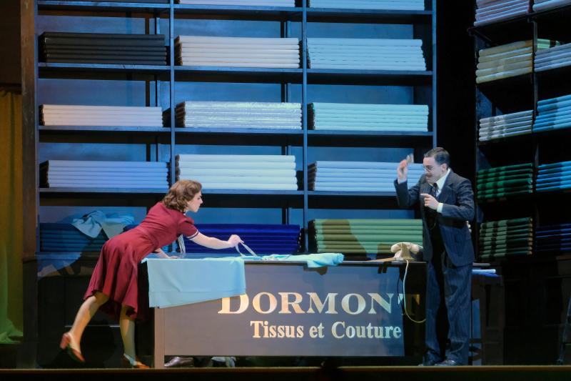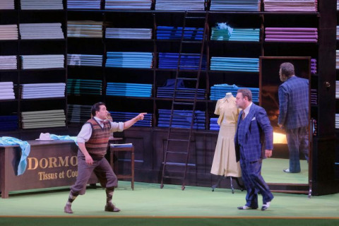 Sicuramente è terapeutico recarsi a teatro una domenica pomeriggio e cercare di distrarsi dalle brutture che stanno attanagliando il mondo recando sofferenze immani a popolazioni innocenti. Senza voler dimenticare assolutamente ciò che ci circonda, il nostro animo per sopravvivere ha bisogno di pillole di serenità come quelle offerte dalla Fondazione Arena di Verona portando in scena per la prima volta, sembra incredibile, La scala di seta di Gioachino Rossini al Filarmonico. Decide di farlo con una squadra totalmente femminile, composta dalla veronese Stefania Bonfadelli alla regia, coadiuvata dalla scenografa Serena Rocco ed i costumi di Veleria Donata Bettella. Se la protagonista silenziosa della trama è una scala di seta allora perché non ambientare l’intera vicenda in un atelier di stoffe in cui eleganti clienti si recano per farsi confezionare abiti alla moda potendo scegliere la materia prima direttamente sul posto? Qui dunque si dipanano i deliziosi quadretti e le gag spassosissime che le regista ha intelligentemente messo in atto esaltando tutti i protagonisti in un turbinio di azioni-reazioni, che invitano il pubblico ad osservare tutto ciò che accade su un palcoscenico mai piatto che coinvolge ad ogni scena.