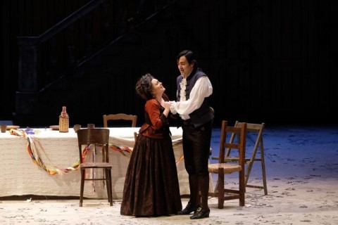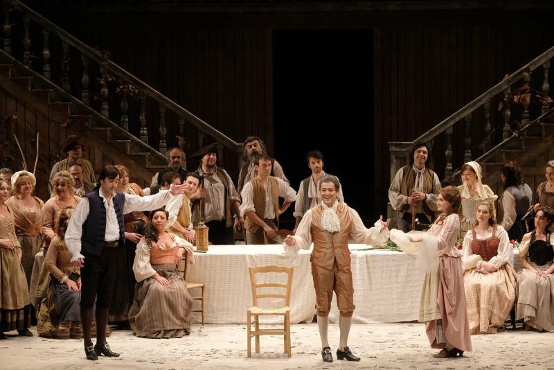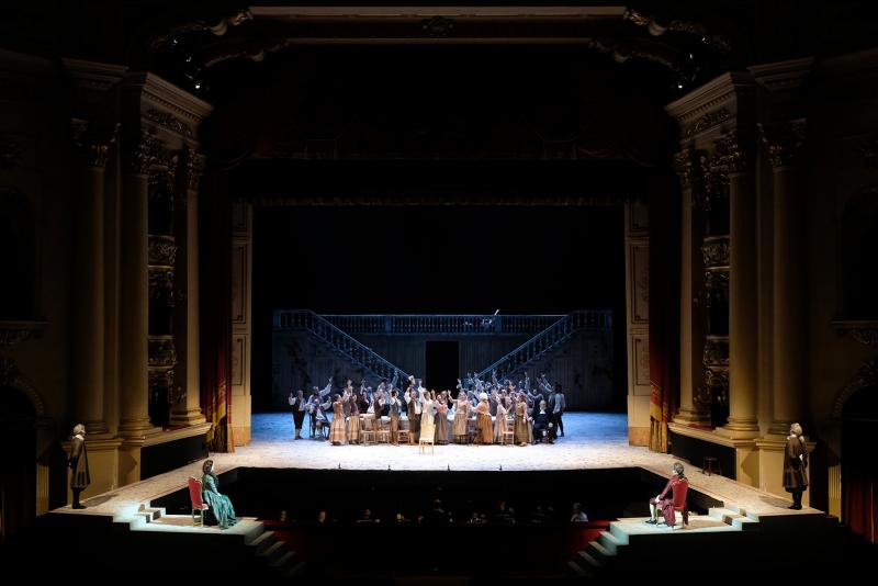Il regista Mario Martone creò per il teatro San Carlo di Napoli l’allestimento che oltre dieci anni fa debuttò nel capoluogo campano e che da allora ha viaggiato molto, approdando finalmente a Verona al Teatro Filarmonico. Sostanzialmente lo spettacolo rimane lo stesso, che abbiamo visto nell'attuale Circuito OperaLombardia circa tre anni fa, con il dovuto riadattamento agli spazi più contenuti rispetto al San Carlo, operato da Raffaele Di Florio, sempre con scene di Sergio Tramonti ed i costumi di Ursula Patzak che per foggia ci riportano all’epoca originale.