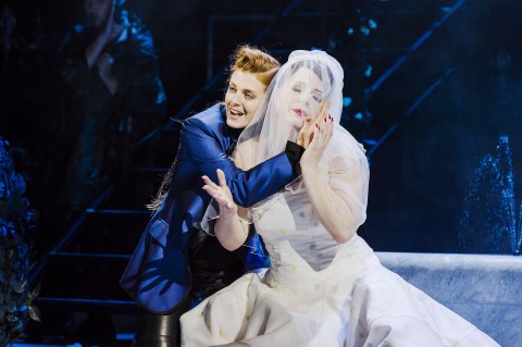 Figaro è Sejong Chang, che ha dalla sua una compartecipazione molto dinamica agli eventi e si muove disinvolto tra gli spazi della scena, ma ad un colore gradevole di voce non corrispondono volume e profondità certamente più apprezzabili per il ruolo che interpreta. Susanna è la graziosa Olena Tokar, che come il suo spasimante compie tutto ciò che necessita alla regia: mossette, faccine e quant’altro serva ad evidenziare la freschezza del carattere; dotata di una voce delicata, porta comunque a casa discretamente il personaggio. La Contessa d’Almaviva è Gal James: cerca una sua dimensione nella parte che però non è supportata da una voce adatta alla afflitta consorte: risulta monocorde e troppo concentrata su se stessa tanto nella recitazione quanto nel canto che non decolla. Si distingue invece il Conte Mathias Hausmann, non solo per presenza scenica e gran disinvoltura, ma anche per dizione, recitazione e canto sciolto grazie ad una voce molto bella e precisa. Cherubino, in veste di chitarrista dalla folta chioma lunga, è Wallis Giunta, cui il regista concede anche una escursione canora nel Don Giovanni dello stesso Mozart. A nostro avviso il mezzosoprano marca molto il ruolo del giovane paggio anche dal punto di vista vocale; Marcellina è Karin Lovelius, che non impressiona particolarmente nella parte, meglio la dolce Barbarina Magdalena Hinterdobler, soprattutto per l’aria 'l'ho perduta..'. Don Bartolo è lo spigliato Randall Jakobsh, mentre Basilio è Dan Karlström (dal look abbastanza discutibile), un po’ troppo pedante. Bene invece il bravissimo e simpatico Patrick Vogel come balbuziente Don Curzio, infine il giardiniere Antonio è Marco Camastra. Le due fanciulle ‘in fiore’ sono Maria Eleni Giuliani ed Anna Pellizzari. Il coro Haydn preparato da Luigi Azzolini è partecipe e corretto.