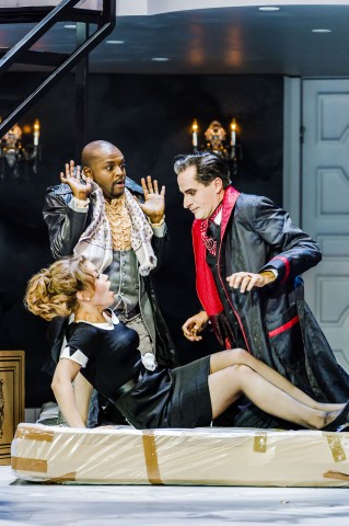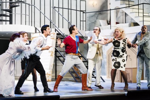 Il regista Gil Mehmert ambienta la vicenda della folle giornata negli anni Sessanta del Novecento ed intende assegnare ad ogni personaggio quella forte personalità del tempo, nonché un senso di ribellione verso il quotidiano o ciò che è imposto forzatamente. Così Figaro e Susanna tentano di opporsi alle pretese del Conte d’Almaviva, che tende a fuggire dai doveri coniugali verso la Contessa, a sua volta stanca delle escursioni per così dire ‘fuori porta’ del consorte. Quindi ogni interprete è portato ad enfatizzare ogni minimo accenno o azione per meglio evidenziare il proprio carattere e ciò naturalmente influenza anche l’aspetto vocale. Tutto si svolge tra i saliscendi delle scalette e le minuscole stanze in cui è divisa una strana casa che dovrebbe essere la dimora del Conte con il suo giardino, creata da Jens Kilian. L’atmosfera è comunque all’insegna della leggerezza e tra i vari personaggi non mancano siparietti, espressioni guascone e situazioni esilaranti. Ciò a cui si assiste è abbastanza convenzionale e senza colpi di scena particolarmente originali. Non sembrano infine esser pensati per valorizzare i personaggi i costumi di Falk Bauer, che non sempre ha tenuto conto della fisicità degli interpreti.