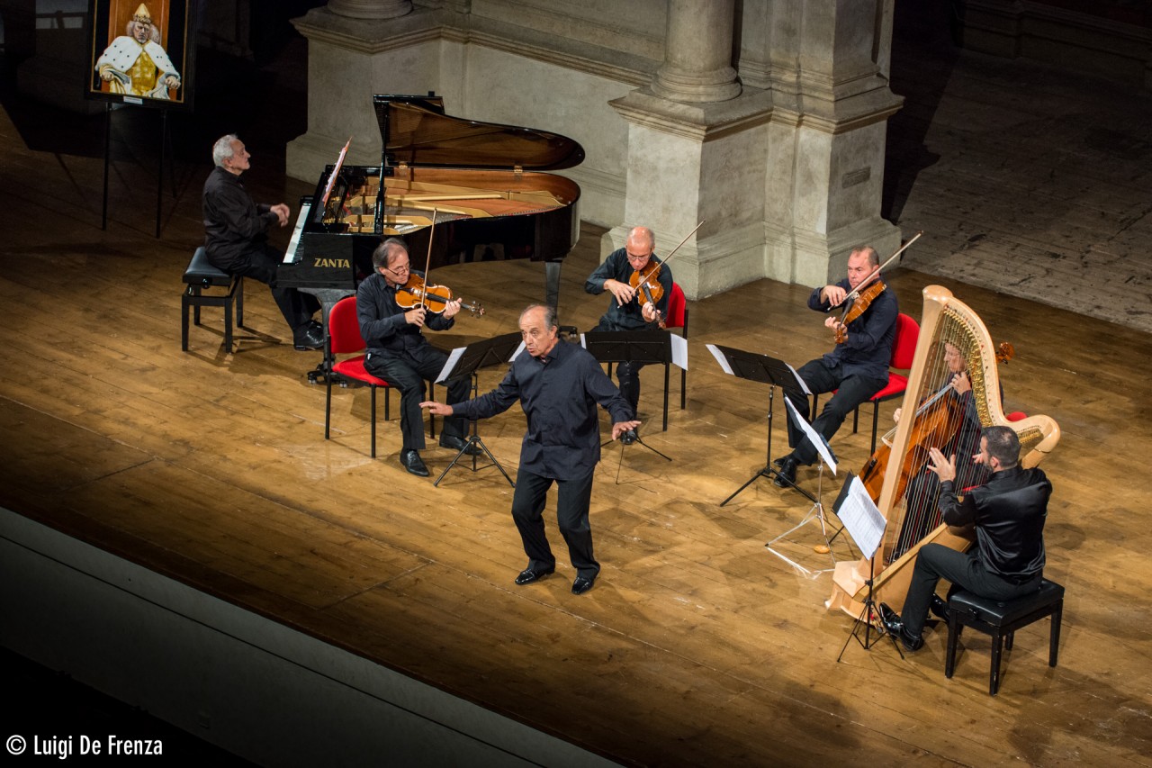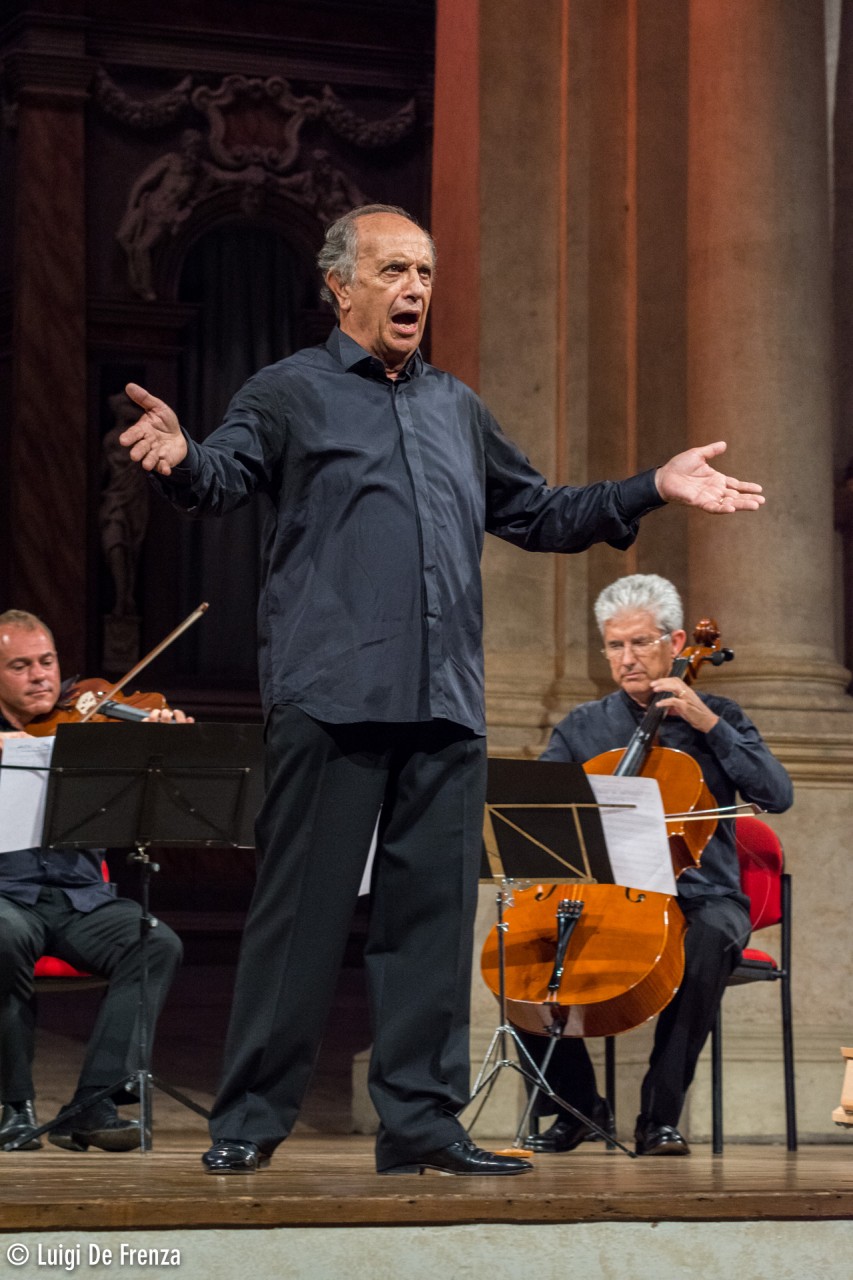 Ancora una volta lo scenario musicale viene favorito dal contesto acustico offerto dal Teatro Olimpico vicentino, le cui gradinate sono state affollate da un pubblico in adorazione per l’artista, composto anche da appassionati in trasferta. Dopo tanti anni di carriera il baritono bolognese riesce ancora a catturare le emozioni ed il vissuto personale di chi lo ascolta, la sua tecnica è sempre salda e lo sostiene anche in situazioni che per altri potrebbero risultare complicate, si pensi al gran caldo in sala e dunque alla maggior difficoltà di sostenere il canto sul fiato. La voce è ancora in grado di fornire bei numeri, capace di lunghi affondi e di sottili sfumature, rese ancor più udibili dall’ambiente sonoro più raccolto del teatro vicentino. Sette arie hanno fatto parte del programma istituzionale, per poi lasciare il posto ai consueti bis, il tutto alternandosi con brani strumentali del Maestro Marcarini al pianoforte, che insieme agli altri cinque elementi della sua orchestra ha proposto pezzi da lui rielaborati sulle celebri arie da camera, dell’Aida e del Falstaff naturalmente di Verdi.