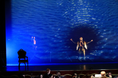 Ormai entrato a pieno titolo nell’eccellenza delle proposte culturali italiane, il Monteverdi Festival affida questa nuova produzione a Luigi De Angelis che cura regia, scene, luci e video mentre la drammaturgia e i costumi sono di Chiara Lagani, che poi assieme ad altri numerosi collaboratori formano la compagnia Fanny & Alexander, dalla quale è nato questo progetto artistico. Affermatasi sulla scena teatrale italiana come gruppo di ricerca, sperimentando metodi e discipline artistiche delle più disparate, Fanny & Alexander ha prodotto spettacoli teatrali, concerti, produzioni video e cinematografiche, installazioni, azioni performative, dove il loro lavoro è stato spesso caratterizzato dalla fusione di linguaggi di diverse discipline nella singola opera. Questo Ulisse ha l’essenzialità di un contemporaneo dai tratti netti e precisi, dai costumi minimali ma coloratissimi, di distorsioni temporali che una volta portano all’antico e a tratti ci proiettano in un oggi fatto di paillettes e t-shirt.