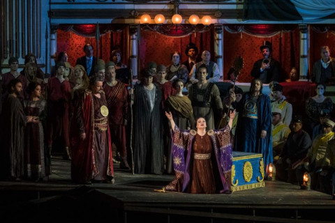 Leggero cambio cast per la produzione de Il Nabucco verdiano che come abbiamo riferito per la prima rappresentazione (http://www.mtglirica.com/categorie/recensioni/g-verdi-nabucco-arena-di-verona-25-giugno-2022.html) torna con successo all’Arena di Verona grazie alla visione registica di Arnaud Bernard coadiuvato dalla realizzazione scenica di Alessandro Camera. Rispetto alla prima non c’è stato il tutto esaurito, ma una buona parte dell’Anfiteatro era occupata da un pubblico che ci dispiace dire si è rivelato poco disciplinato, soprattutto per l’impazienza durante gli intervalli, che sappiamo essere leggermente macchinosi e lunghi, ma doverosi considerando la macchina scenica posta in essere per questo tipo di spettacoli. Serata fresca e ventilata all’interno del catino areniano che ha visto nel cambio cast due sostituzioni: Sebastian Catana nel ruolo di Nabucco ed Ewa Plonka nel ruolo di Abigaille. Catana ha dalla sua una voce di corpo ben strutturata che lo aiuta a sottolineare la drammaticità del personaggio che ci è parso rodarsi sempre più con il proseguire dello spettacolo e rendergli pienamente giustizia soprattutto nel quarto atto per intensità emotiva; voce rotonda e completa per il soprano Plonka che rispetto a quanto richiesto da una regia dinamica e che lascia anche spazio alle attitudini personali, offre una Abigaille più contenuta nel suo essere donna vendicativa tradita nell’orgoglio e negli affetti. Si conferma quanto detto per gli altri interpreti. L’orchestra è sempre guidata da un ruspante Daniel Oren con il coro diretto da Ulisse Trabacchin. Per questa produzione il pubblico non ha bisogno di chiedere il bis del ‘Va pensiero’ poiché già previsto nella messa in scena del piccolo teatro Alla Scala.