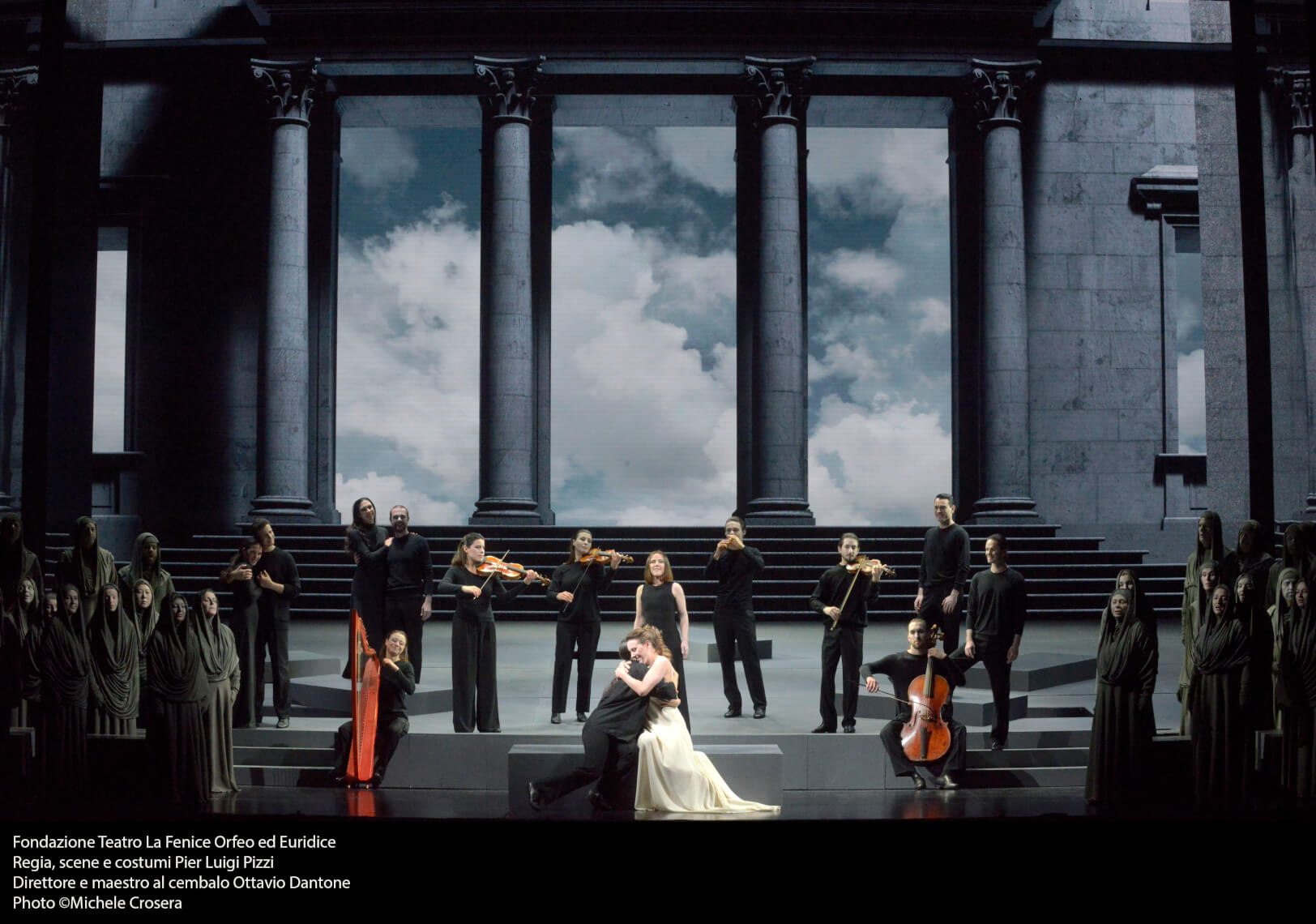 La Fondazione Teatro La Fenice decide, dopo circa trant' anni dall’ultima rappresentazione sulle sue tavole, di affidarsi al quasi novantatreenne regista Pier Luigi Pizzi per una nuova produzione di Orfeo ed Euridice di Gluck, simbolo dello storico sodalizio artistico tra il compositore ed il raffinato letterato Ranieri de’ Calzabigi, nella versione di Vienna del 1762. Il regista milanese crea uno spettacolo che a nostro avviso incarna proprio quanto prescritto dalla celebre riforma dell’opera seria, con uno spettacolo asciutto, raffinato e ‘candido’, in cui ci sia pieno coinvolgimento ed intreccio tra esecuzione musicale e quanto avviene in scena. Niente fronzoli canori così come niente di esagerato o che sconvolga il libretto viene portato sul palcoscenico, con una generale neutralità di colori chiaro - scuri ed una raffinatezza nei gesti e nelle movenze dei protagonisti che sembrano figure eteree volteggianti nell’aria. Tutto curato da Pizzi ovviamente: regia, scene e costumi, certo non distanti da quanto ci ha abituati a vedere, ma questa certezza rassicura, piace e rende il pubblico attento ed entusiasta per quanto visto. Massimo Gasparon completa il 'mood' con luci azzeccatissime che aggiungono ed intensificano il dramma (o la gioia) nei momenti essenziali.