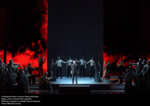 La drammatica e catartica gestione musicale è affidata all’inossidabile Ottavio Dantone, direttore ed al cembalo, garanzia di approfondimento e rispetto del compositore per intenti e realizzazione. La sua gestione dell’orchestra veneziana è precisa, elegante e scarna di inutili frizzi e lazzi, ma sensibile alle trasformazioni in atto passo dopo passo; avvolge di trascinante energia il palco che non deraglia mai ed anzi è assecondato in ogni momento.
