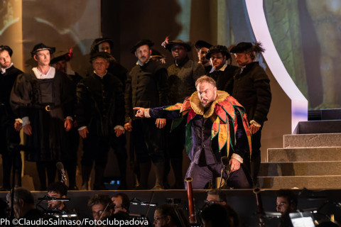 Una nuova produzione di Rigoletto ha inaugurato il 28 luglio, la Stagione Lirica 2022 organizzata e prodotta dal Comune di Padova – Assessorato alla Cultura, in collaborazione con il Teatro Stabile del Veneto. Un nuovo allestimento, nato dalla coproduzione con Bassano Opera Festival, Teatro Mario del Monaco di Treviso e Teatro Sociale di Rovigo, che ha inaugurato soprattutto la nuova location del Castello Festival di Padova, non più al Castello Carrarese, ma nella suggestiva cornice della Piazza degli Eremitani. Bisogna rilevare però che nonostante la centralità della piazza e la suggestiva posizione, il rendimento acustico abbia subito una notevole penalizzazione, tanto da dover ricorrere ad una fastidiosa e spesso sbilanciata amplificazione che, assieme ai normali rumori di sottofondo di una città che vive, ha in parte “drogato” la resa musicale.