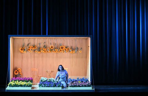 Solite palandrane e vestitini anonimi (Amelia calza delle meravigliose Crocs a fiori nel primo atto) sono la cifra stilistica dei costumi di Mauro Tinti. Una cella frigorifera è il Palazzo dei Fieschi (dove si presume che Jacopo conservi il corpo della figlia morta Maria) che si trasforma poi nella casetta di Amelia e le già citate mezzene di bue sono le scene di Martina Segna.