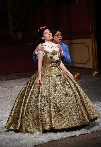 Nei ruoli di contorno, tutti particolarmente attivi, apprezziamo la brava Annina di Alessandra Contaldo, il pimpante Gastone di Giuseppe Distefano, Davide Fersini nel ruolo del Barone Douphol, Matteo Mollica come Marchese D’Obigny. Shi Zong è il dottor Grenville.
