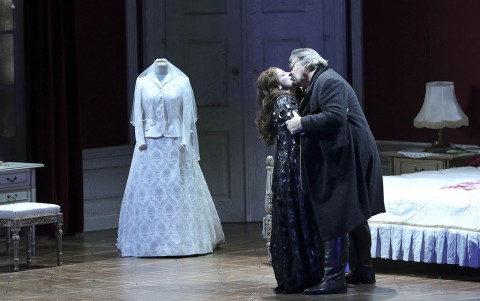Guth pensa tutta l'azione all'interno di una villa borghese ottocentesca, in una successione quasi cinematografica e vorticosa di camere da letto, sale da pranzo, corridoi e giardini d'inverno, con un palcoscenico girevole che mostra il dramma piccolo-borghese di adulterio e peccato di una coppia illecita.