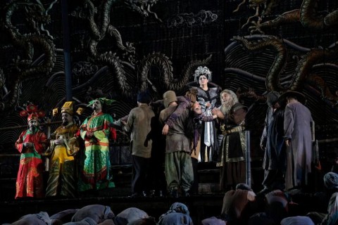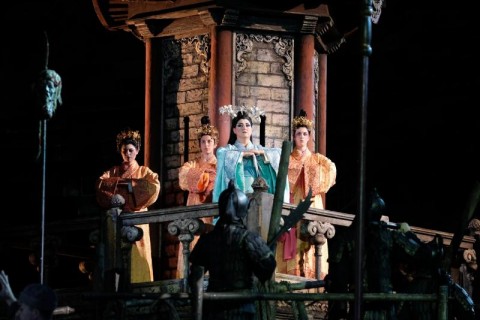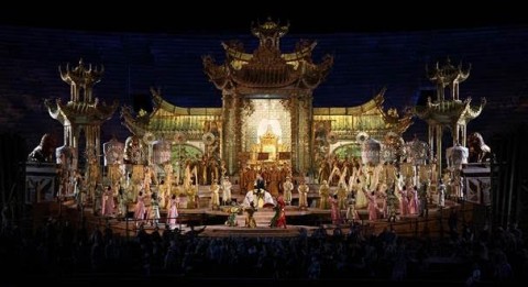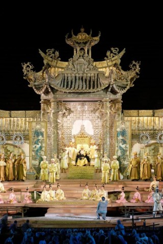 Ancora nel segno dell’intramontabile Franco Zeffirelli la Fondazione Arena di Verona ripropone come terzo titolo l’allestimento di Turandot che otto anni fa debuttò con un successo che si ripete ogni volta che il pubblico si trova ad ammirare quanto partorito dalla mente del regista fiorentino, che si avvale dell’esperienza di Emi Wada per i costumi. Totalmente immerso in una regno fatato di ori e luci sfolgoranti, curate da Paolo Mazzon, scopo del regista è sempre quello di stupire rispettando il libretto. Il netto contrasto tra i vincenti al centro della scena ed il popolo sottomesso sempre in ombra e quasi sciame informe, l’alterigia della principessa e di suo padre, l’estrema mascolinità del pretendente vincitore e di tutti coloro che aspirano ad esserlo (come avanza fiero ed impassibile il principe di Persia verso la sua esecuzione), il coraggio della schiava Liù e la fierezza di Timur, la baldanza delle tre maschere... sono il cardine di questo spettacolo. Non solo dunque tanto fumo a riempire gli occhi, ma anche uno studio dei personaggi che si muovono ed agiscono come sul grande schermo, grazie anche a Maria Grazia Garofoli che coordina i movimenti coreografici. Chiaramente ci sono le classiche folle ingombranti, l’esagerato sfoggio del lusso, una atmosfera un po’ circense che può risultare stucchevole ad un certo punto. Ma d’altra parte siamo in una Cina fantastica ove tutto è possibile e non v’è limite all’immaginazione, e questo è Zeffirelli.