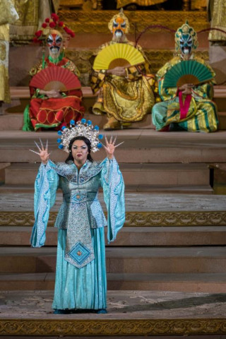 Sul soprano ormai si sono spese centinaia di parole soprattutto sul suo essere Diva anche in scena qualsiasi ruolo essa reciti; la sua ‘Principessa di gelo’ è tale: glaciale ed irraggiungibile, circondata da un’aurea di intoccabilità che l’interprete gestisce con navigata intelligenza. La sostiene una voce piena e rotonda che forse oggi passa addirittura in secondo piano rispetto a quanto l’attenzione si focalizzi sulla presenza scenica dell'interprete, ma si conferma ancora una volta forte e dall' innegabile volume, pronta a sciogliersi nel calore delle note più dolci del finale col suo Calaf. Così Eyvazov si conferma interprete generoso la cui tecnica migliora anno dopo anno e al di là delle solite disquisizioni su timbro e colore l’interprete è sempre più amato ed apprezzato, è sicuro su tutte le note della sua parte musicale e concede anche il bis di ‘Nessun dorma’ coperto dai soliti applausi di un pubblico che non sa aspettare. Il suo Calaf è appassionato e pare quasi ispirato da una forza superiore che lo porta a trascendere da se stesso e a diventare tutt’uno col suo personaggio.