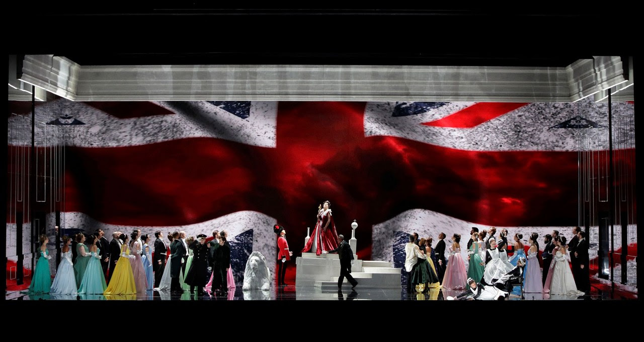 La regia diDavideLivermore,coni sorprendenti scenari creati dal videodesign D-Wok,reinventa creativamente il contesto storico in cui si svolge l’azione e la sposta dal1600all’Inghilterra degli anni Cinquanta del Novecento, nel regno di Elisabetta II. Il conflitto tra Inghilterra e Scozia diventa la Seconda Guerra Mondiale, e le scene e i costumi citano esplicitamente film come The Queen o fiction televisive di grande popolarità come The Crown.