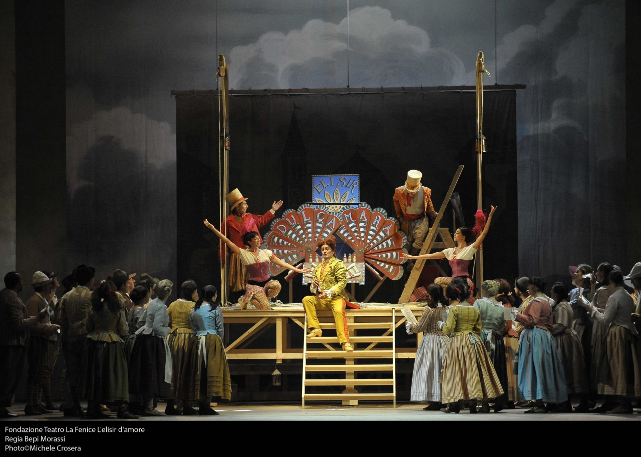 L’elisir d’amore di Gaetano Donizetti, melodramma giocoso in due atti su libretto di Felice Romani, debuttò invece al Teatro della Canobbiana di Milano il 12 maggio 1832. La sua partitura, ricolma di melodie incantevoli, è forse la più piacevole mai composta da Donizetti nel genere comico. Nel primo atto è degna di nota la vivacità nello sproloquio autopromozionale del ciarlatano dottor Dulcamara e nel suo duetto col povero ragazzo Nemorino, innamorato senza speranza di Adina, la capricciosa bella del villaggio. Pezzi forti del secondo atto sono il coro «Cantiamo, facciam brindisi», la barcarola «Io son ricco e tu sei bella», il quartetto «Dell’elisir mirabile», il duetto Adina-Dulcamara «Quanto amore», e infine la soave ballata di Nemorino «Una furtiva lagrima», cavallo di battaglia del repertorio tenorile. Lo spettacolo sarà in scena nell’allestimento firmato dal regista Bepi Morassi con le scene e i costumi di Gianmaurizio Fercioni, mentre l’Orchestra e il Coro del Teatro La Fenice saranno guidati da Jader Bignamini. Nove le recite previste al Teatro La Fenice: il 15, 16, 18, 19, 20, 21, 22, 23 e 25 febbraio 2020.