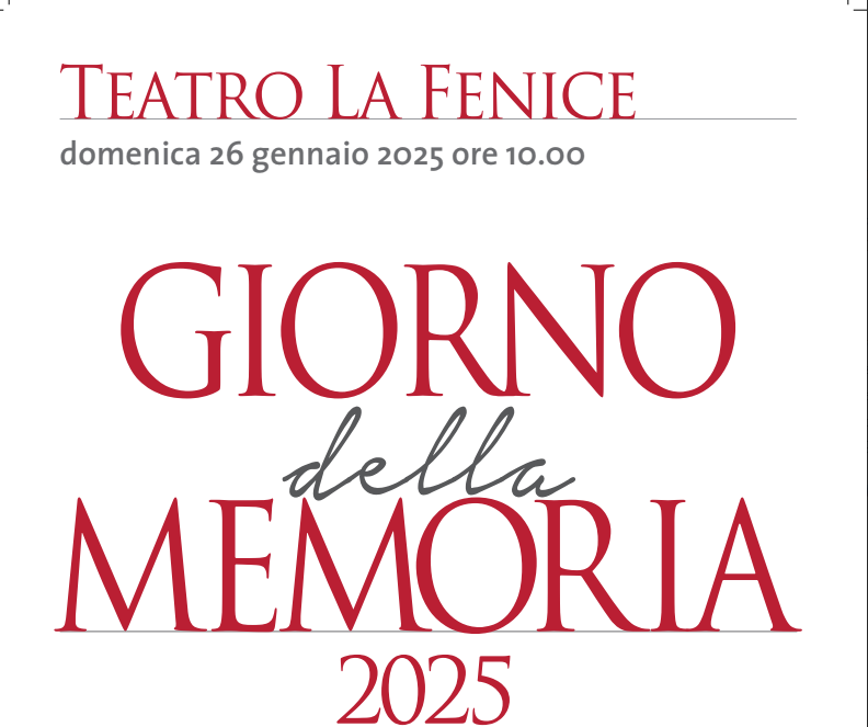 L’evento è realizzato in collaborazione con il Comune di Venezia, con la Presidenza del Consiglio della Città di Venezia e con il comitato Il giorno della Memoria. 27 gennaio. Ingresso su invito.