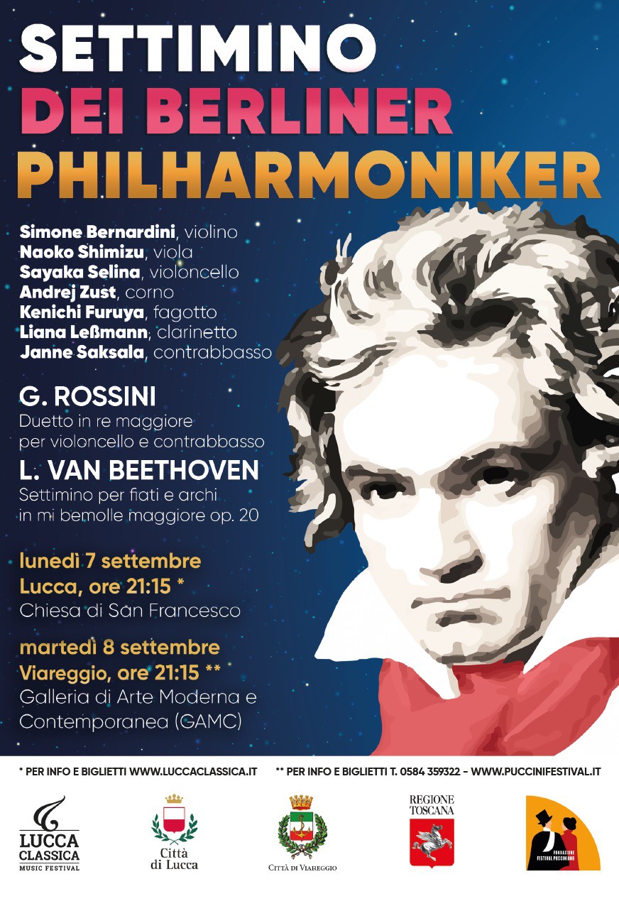 Ospiti del Lucca Classica Music Festival per il concerto finale (lunedì 7 settembre, ore 21.15, chiesa di San Francesco) e della Fondazione Festival Pucciniano (martedì 8 settembre, ore 21:15, Galleria di arte contemporanea GAMC), i musicisti celebreranno i 250 anni dalla nascita di Beethoven eseguendo il suo Settimino per fiati e archi in mi bemolle maggiore op. 20, componimento ritenuto il più compiuto e perfetto del Beethoven "settecentesco" (inteso come richiamo ai canoni di quel secolo). Ad aprire il programma la musica di Gioachino Rossini con il Duetto in re maggiore per violoncello e contrabbasso.