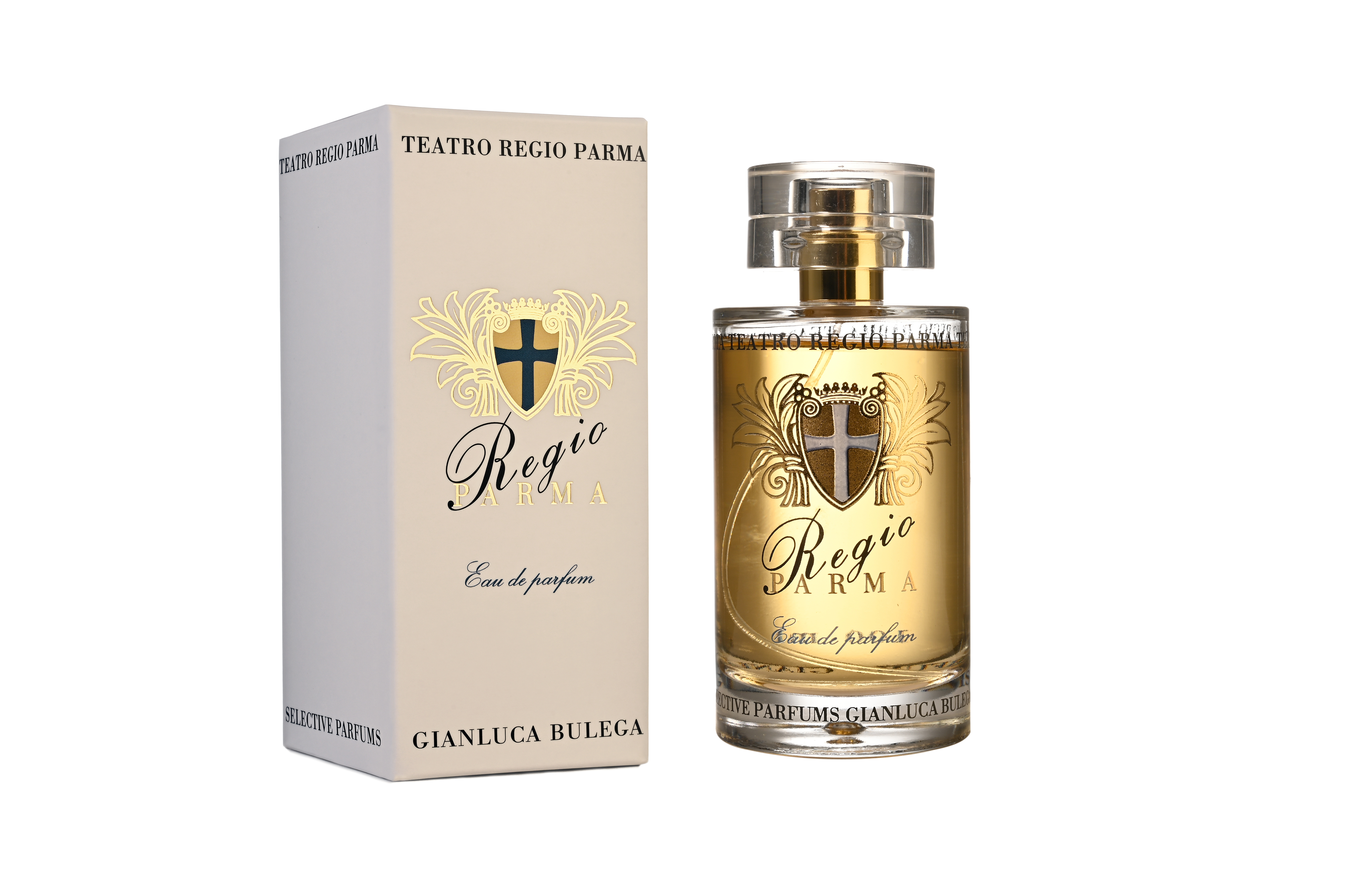 L’essenza del Teatro Regio è stata racchiusa nella sinfonia di nuance dell’esclusiva Eau de parfum Regio Parma by Gianluca Bulega, realizzata con olii essenziali puri che rendono la fragranza calda e avvolgente. Note di testa, appena fruttate e agrumate, sono di petitgrain e foglie di fragola, che si sposano con le note di cuore, dal corpo decisamente floreale con nuance di ylang-ylang, geranio e note di rosa carnosa, reso originale da tracce di lavanda e chiodi di garofano, su di uno sfondo vellutato, ambrato e legnoso, grazie al patchouly, al benzoino, al sandalo e alla resina di labdano unita a bacche di vaniglia.