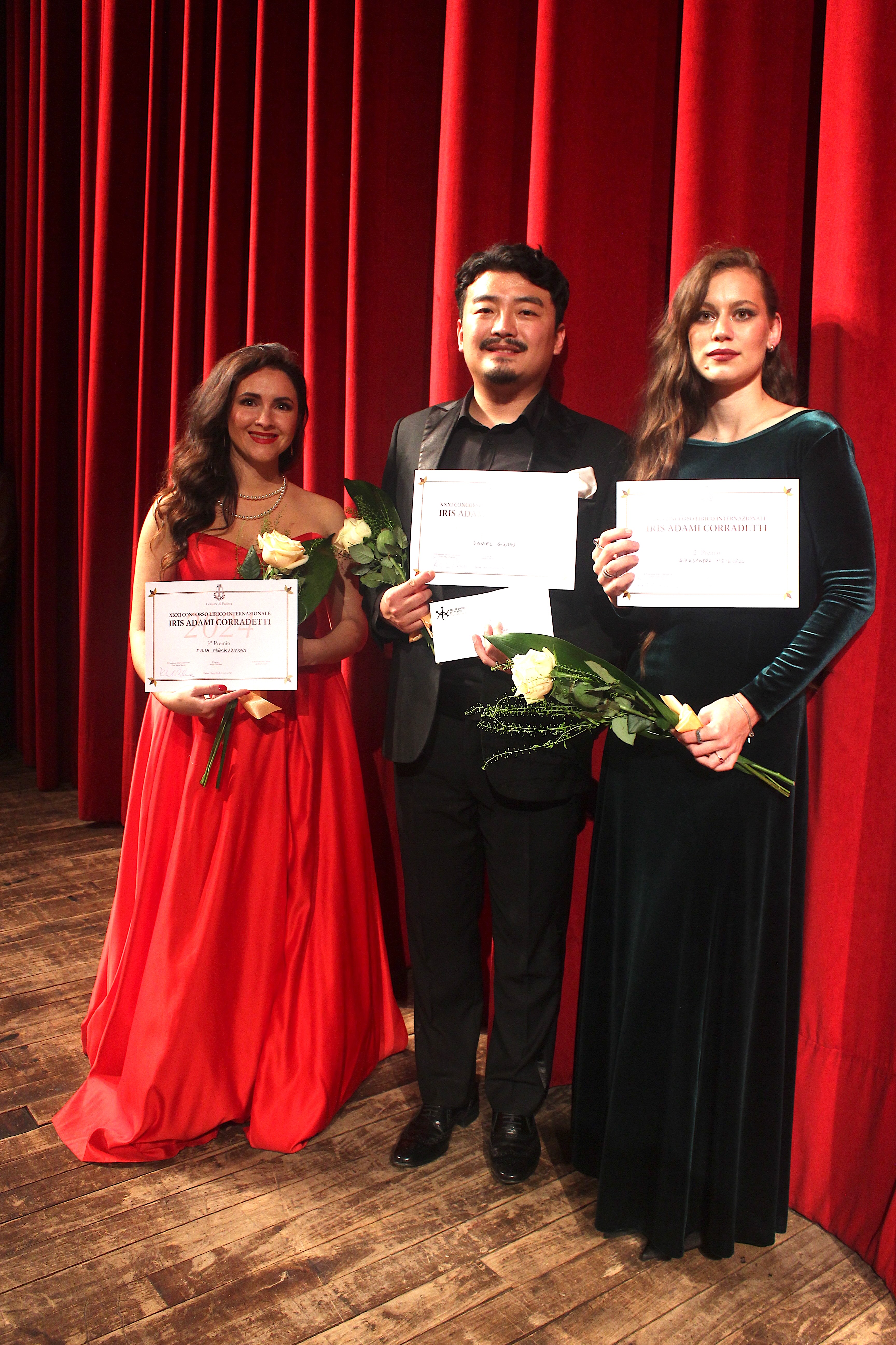 Trionfa con il primo premio di € 8.000 il baritono coreano Gyungmin Daniel Gwon di 31 anni, secondo premio (€ 5.000) al mezzosoprano venticinquenne russo Alessandra Meteleva che si è aggiudicata anche la Borsa di Studio “Lucia Valentini Terrani”, dedicata alla memoria del celebre mezzosoprano padovano, terzo premio (€ 3.000) al soprano ucraino Yulia Merkudinova.
