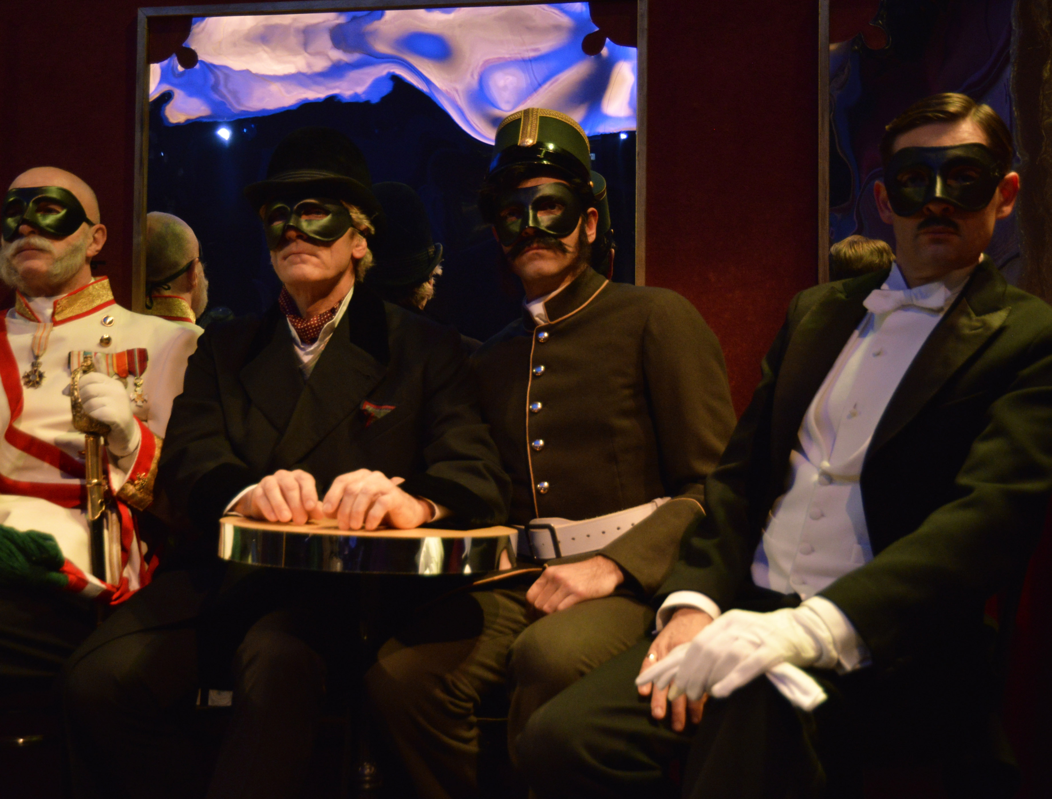 Si entra immediatamente nel clima della Vienna decadente a cavallo tra fine 800 e inizio 900 del secolo scorso, appena si varca la soglia del Teatro Due di Parma, quando una graziosa signora vestita in abiti maschili e con una frusta in mano, ti accompagna al tavolo al quale ti verrà servita la cena durante lo spettacolo, chiedendoti se gradisci una maschera per non essere riconosciuto durante la visione della scabrosa performance.