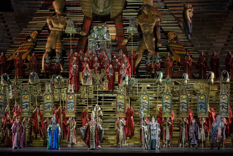 Ennesimo cambio cast per l’Aida di Giuseppe Verdi del 19 luglio con interpreti alla loro prima per quest’anno e qualche conferma. L’allestimento ormai ben noto di Franco Zeffirelli di cui abbiamo recensito alla prima stagionale (http://www.mtglirica.com/categorie/recensioni/aida-g-verdi-arena-di-verona-sabato-23-giugno-2018.html) suscita sempre il placet del pubblico e risulta comunque funzionale al libretto nella sua complementarietà tra scene ed azione, con le coreografie attinenti al contesto di Vladimir Vasiliev.