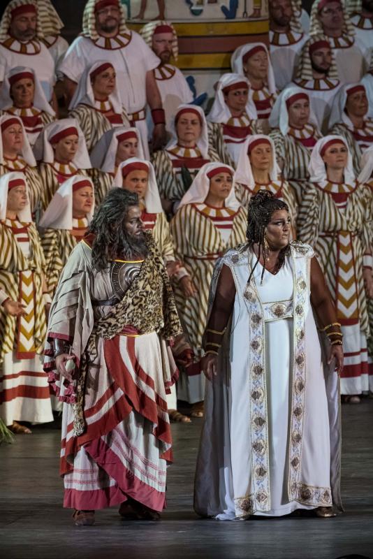 Opera simbolo dell'anfiteatro veronese, presenza fissa e costante nel cartellone dal lontano 1913, Aida è ormai come una mamma buona che ti accoglie tra le sue braccia e ti rassicura qualunque sia il cast, allestimento o direzione d'orchestra, in barba alle temperature più torride (come in questo caso) o ai temporali più catastrofici.