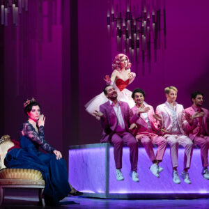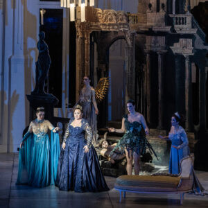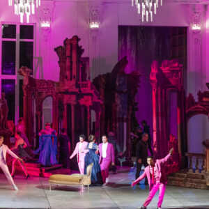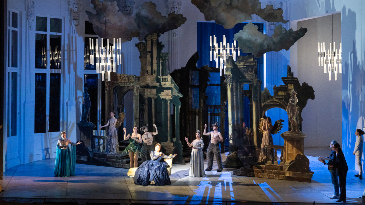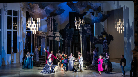 L’opera nasce nel 1912 quando Hugo von Hofmannsthal propone a Strauss di musicare alcune scene del Borghese gentiluomo di Molière a cui sarebbe successo il dramma mitologico di Arianna. Tuttavia il progetto non ebbe successo e fu completamente ripensato per la versione definitiva del 1916, composta da un Prologo e un Atto: nell’antefatto si raccontano i preparativi di una festa presso la casa di un ricco signore viennese che per intrattenere gli ospiti di una festa a palazzo organizza la messa in scena di un’opera basata sul mito e una commedia improvvisata. Si raccontano così la preparazione dello spettacolo e le scaramucce fra le due compagnie guidate dalle rispettive primedonne, Ariadne e Zerbinetta, le quali alla fine si trovano a dover rappresentare simultaneamente i due lavori. Il dualismo fra antico e moderno viene ripreso e coniugato da Strauss non solo dal punto di vista musicale e melodico ma anche dalla scelta dell’organico orchestrale che è fondamentalmente cameristico e settecentesco con l’aggiunta di pianoforte, arpe e percussioni. Dualismo che naturalmente troviamo anche accentuato dalle vivaci scene e costumi di Gary McCann e dall’enfatico e intenso disegno luci di Howard Hudson.