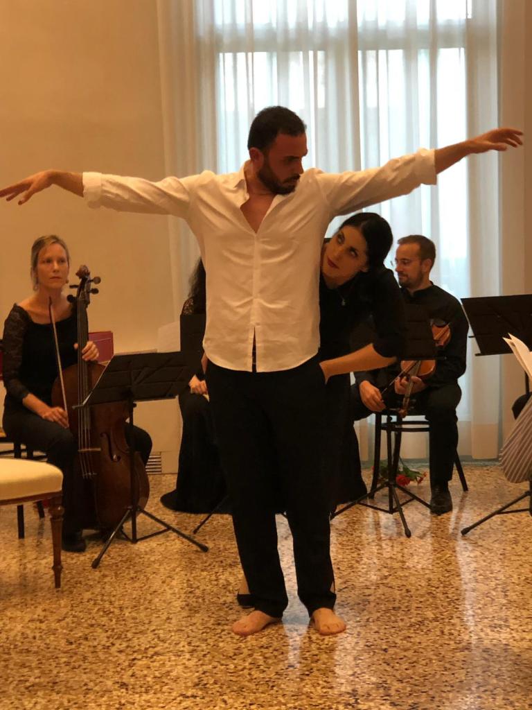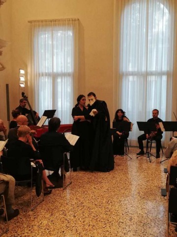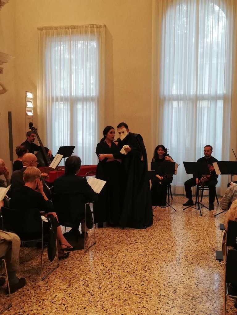 Anche gli intermezzi sono uno degli appuntamenti frequenti di Vicenza in Lirica, sempre alla ricerca di chicche da offrire al suo pubblico, e grazie anche agli spazi che la città berica offre nei cortili dei suoi famosissimi palazzi d’epoca. Il tempo non ha permesso di usufruire di quello di Palazzo Leoni Montanari, ma l’organizzazione ha subito compiuto uno switch dirottando lo spettacolo in uno dei magnifici saloni al suo interno.