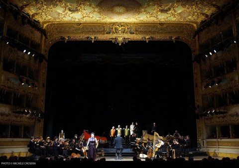 Un’opera che è raro vedere, queste celebrazioni monteverdiane stanno riportando l’attenzione su un repertorio un po’ messo da parte, non solo quindi Puccini e Verdi ma anche musica del ‘600 eseguita in una Fenice sold out; nessun posto libero in questo turno di abbonati che non hanno marinato il teatro nonostante l’assolato sabato pomeriggio.