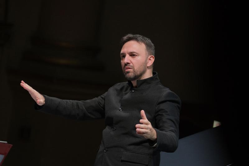 Qui il pianoforte di Sciortino evita ogni vezzo impressionista: attacco netto, articolazione tersa, prospettive sonore calibratissime. Fagone dirige con rigore luminoso, modellando una tavolozza precisa: legni dal timbro perfettamente profilato, ottoni ben focalizzati e mai invadenti, archi che sostengono con compattezza e linearità il discorso musicale. Il Presto tragico avanza con energia controllata, mentre nel penultimo episodio emerge uno scambio violini–pianoforte di notevole perizia: fraseggio terso, attacchi millimetrici, senso dell’incastro timbrico da autentica musica da camera. Il centro della serata è la prima esecuzione assoluta di Sentieri della memoria, Concerto per pianoforte e piccola orchestra di Orazio Sciortino, commissionato per l’anniversario del Filarmonico. Il titolo suggerisce un percorso interno, un archivio mentale in cui forme e figure ritornano trasformandosi. Il primo movimento prende avvio da un mi bemolle ribattuto dal quale si diramano superfici armoniche e linee che scorrono come una galleria di oggetti in movimento. La cadenza, ampia e sorvegliata, è quasi un recitativo introspettivo che traghetta al cuore dell’opera. La scrittura, in particolare per il pianoforte, è di difficoltà altissima: velocità estreme, sovrapposizioni virtuosistiche, incastri ritmici serrati e passaggi in cui l’interprete deve intervenire direttamente sulle corde, ampliando la tavolozza timbrica dello strumento. Sciortino affronta tutto con una lucidità tecnica impressionante, senza mai perdere la naturalezza del flusso musicale. Nel secondo movimento, Di quartieri e uomini solitari, riemerge Baggio in forma sonora: la cellula “si–la–sol–sol”, le campane distanti, il vibrafono che disegna risonanze, i pizzicati come passi nella notte. Il finale è un moto perpetuo brillante, quasi un gioco di riflessi che l’orchestra segue con prontezza, mentre Fagone mantiene la struttura in perfetto equilibrio. Al termine del concerto di Sciortino, il pianista si è congedato dal pubblico con un bis di rara finezza: Les chemins de l’amour di Poulenc, in una trascrizione pianistica realizzata dallo stesso Sciortino, eseguita con tocco morbido, senso della linea e un controllo dinamico che ha restituito tutta la malinconica grazia del brano. La chiusura è affidata a Richard Strauss, con la Sonatina n. 1 per fiati, scritta negli ultimi anni del compositore. Opera apparentemente minore, in realtà laboratorio prezioso di trasparenze, contrappunti e humour. Fagone e i fiati dell’orchestra la affrontano con chiarezza architettonica: legni che respirano come un ensemble cameristico, ottoni calibrati con eleganza, sezioni che si incastrano con una naturalezza laboriosa, quasi artigianale. Ne emerge un piccolo gioiello, luminoso pur nella sua introspezione. Il pubblico ha accolto la serata con entusiasmo, tributando a tutti gli interpreti lunghi e calorosi applausi.