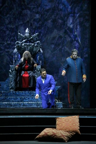 La Elisabetta di Valois di Maria José Siri è fin troppo irreprensibile (il costume non aiuta neanche lei) nel dolore del sentimento che deve nascondere anche a se stessa. Ma vocalmente regala dei bei momenti e soprattutto nell’aria Tu che le vanità tira fuori una grinta disperata che esalta le qualità tecniche del soprano. Ottimo il Rodrigo di Luca Salsi, che ha dalla sua una pura voce baritonale decisa e completa su tutta la gamma del registro, che gli consente di dare espressività ad ogni suo gesto ed essere il più sciolto in scena. Don Carlo rivive nei panni di Roberto Aronica che negli anni ci ha abituati a serate altalenanti o positivissime. Questa volta il personaggio c’è nel sangue e nel cuore ed anche vocalmente trasmette tanto fulgore di sentimento; forse fin troppo: una maggiore gestione dell’acuto renderebbe meraviglioso il suo canto. Impenetrabile quasi il Filippo II di Dmitry Beloselskiy: la voce cavernosa è tenebrosa quanto lo stato d’animo del suo personaggio. Stesso dicasi per il Grande Inquisitore Luiz-Ottavio Faria, a cui facciamo i complimenti per essere riuscito a rendersi credibilmente serio ed austero nonostante il costume, grazie ad una voce veramente affascinante. Nelle vesti della Principessa Eboli Veronica Simeoni che mostra carattere deciso e sensualità estrema, e che il regista vuole nelle stanze dell’infelice Filippo prima del suo risveglio. La voce che ben conosciamo sale tranquillamente ed è uniforme e sicura. Luca Tittoto interpreta un buon Frate, discreta è Nina Solodovnikova come Tebaldo, mentre Massimiliano Brusco, Rosolino Claudio Cardile, Erika Tanaka sono il Conte di Lerma, l’Aroldo Reale e la Voce dal Cielo.