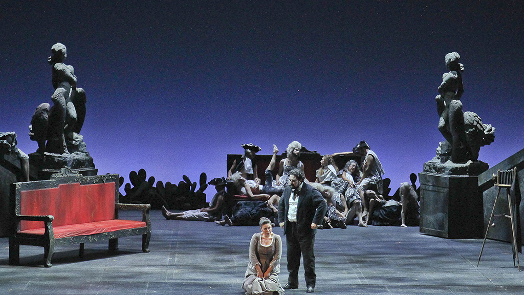 E’ la volta di Don Giovanni al Teatro Regio di Torino per proseguire la triade dapontiana, con l’allestimento che nel 2013 riprese lo spettacolo già datato 2005 partorito dalla mente di Michele Placido. Ripresa da Vittorio Borrelli, è una regia sempre più cupa quella che narra le vicende del dissoluto punito, partendo da una certa neutralità data anche dagli ambienti creati da Maurizio Balò, inizialmente solo accennati dietro un sipario fittizio, che man mano si arricchiscono di particolari foschi, dalle architetture ai dettagli ed alle luci di Andrea Anfossi, sempre più tendenti al rosso delle fiamme infernali.