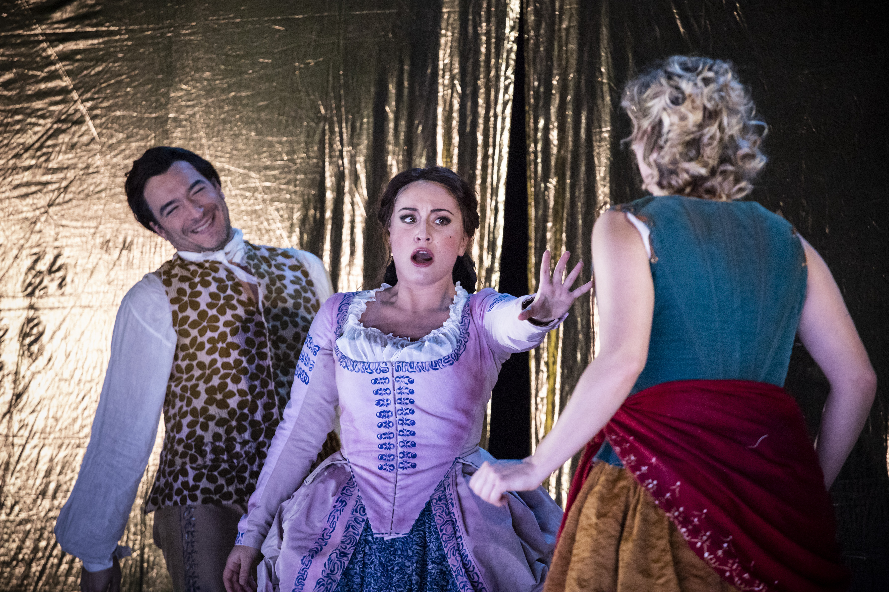 Il trio che racchiude un po’ le varie tipologie femminili, dalla santarella alla vipera passando per la gatta morta, è composto da Federica Lombardi, quasi santificata nel ruolo di Donna Anna compassata e timorosa, che in quella sua certa rigidità forse anche vocale su certi passaggi, raggiunge consensi come più ammirevole tra le donne in scena. Poi, la intensa donna Elvira di Salome Jicia, spigliata leonessa e rompiscatole prezzemolina, robusta vocalmente che nonostante la precarietà del contesto scenico spicca per carattere e concretezza. Infine, la gattina Zerlina è una Lavinia Bini vocalmente omogenea e fresca, dalle movenze delicate e furbetta quanto serve.